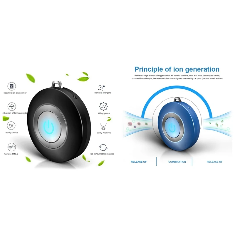 Портативный переносной USB-очиститель воздуха (черный) и быстрое ожерелье воздухоочистителя, портативный USB-очиститель воздуха, синий