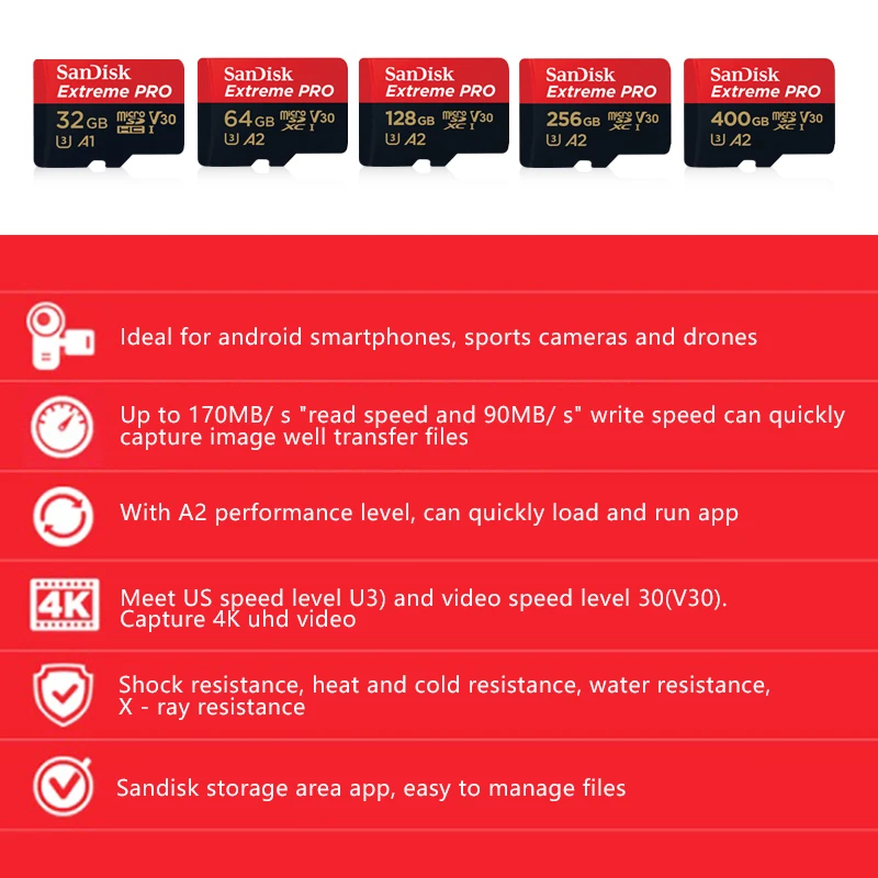 Карта памяти vSanDisk Extreme Pro Micro SD, 256 ГБ, 128 ГБ, 64 ГБ, ...