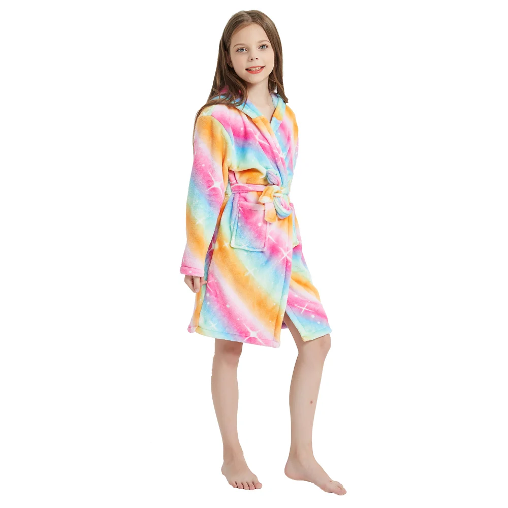 Зимние халаты с единорогом, Детские пижамные халаты для девочек, Ха...