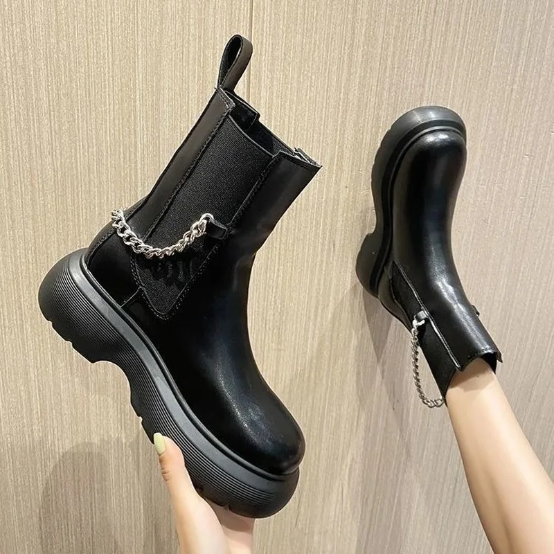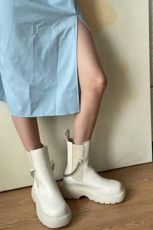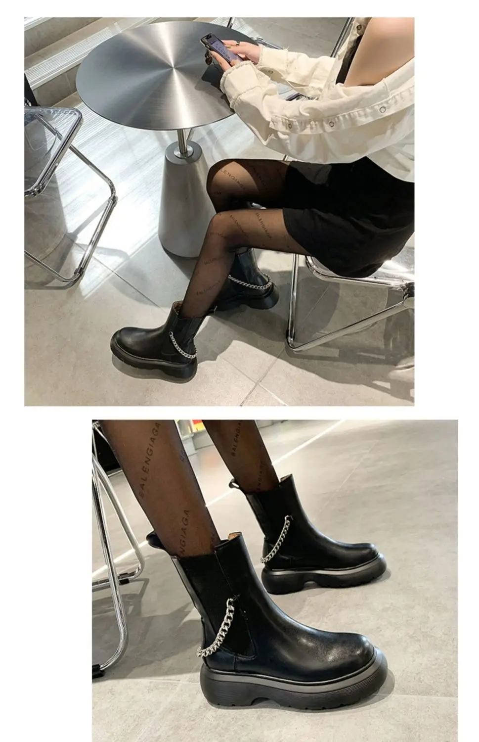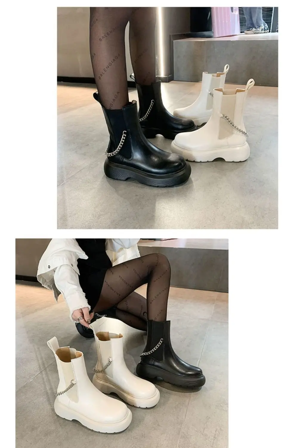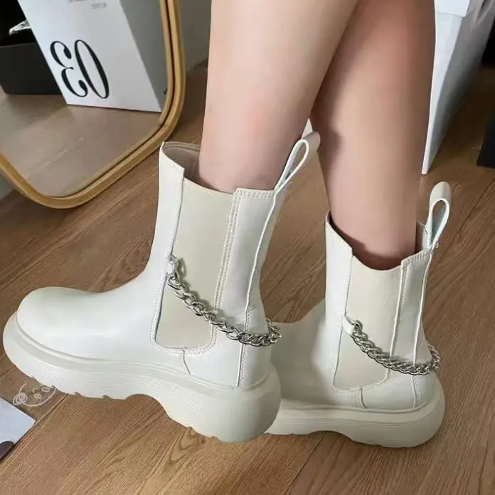 Женские кожаные ботинки челси QWEEK, черные и белые ботинки до середины икры, на платформе, на резиновой подошве, удобные, Осень-зима, 2021
