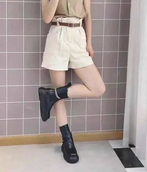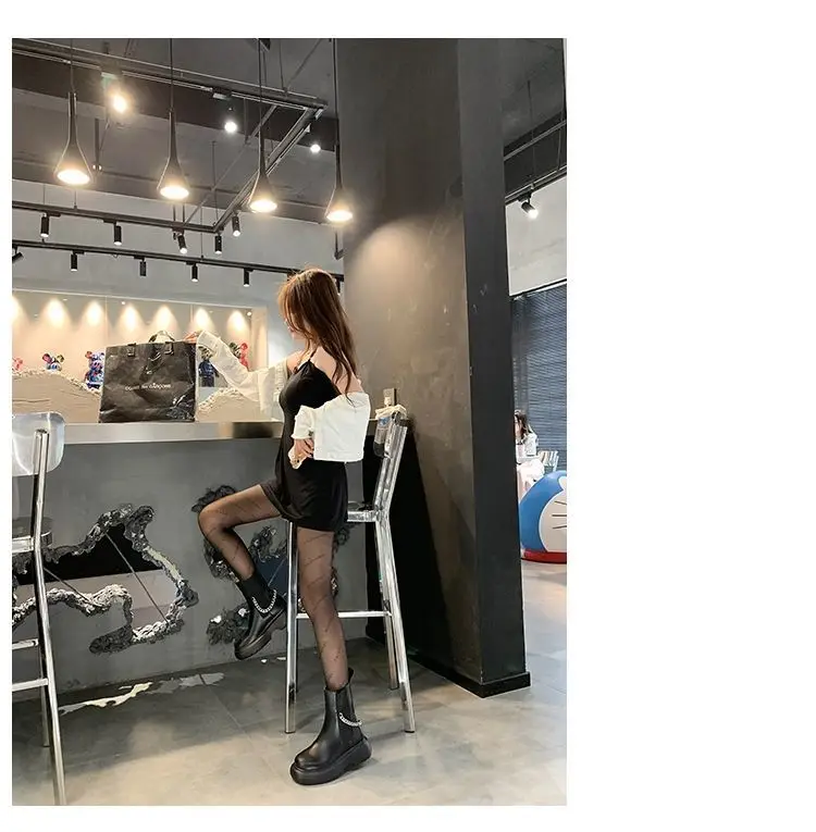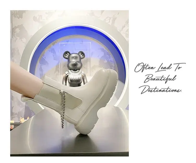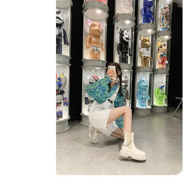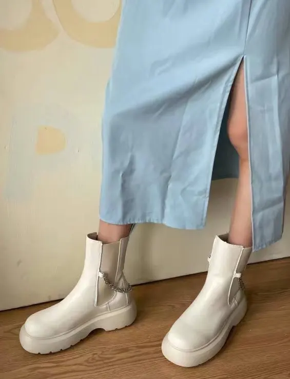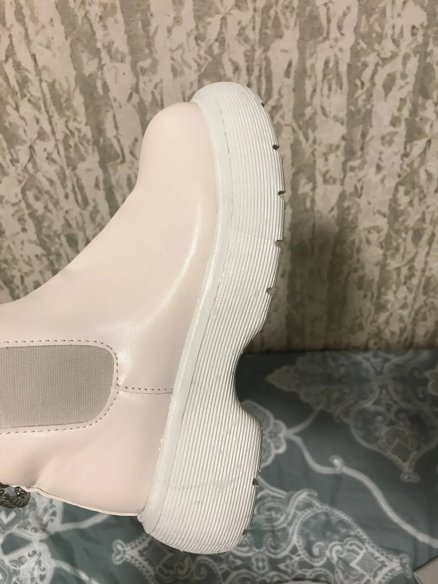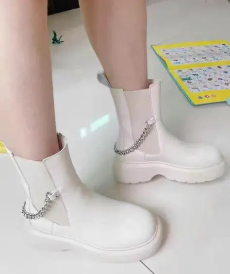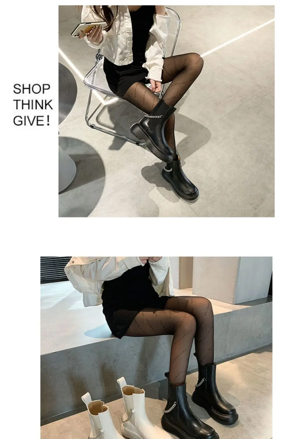 Женские кожаные ботинки челси QWEEK, черные и белые ботинки до середины икры, на платформе, на резиновой подошве, удобные, Осень-зима, 2021