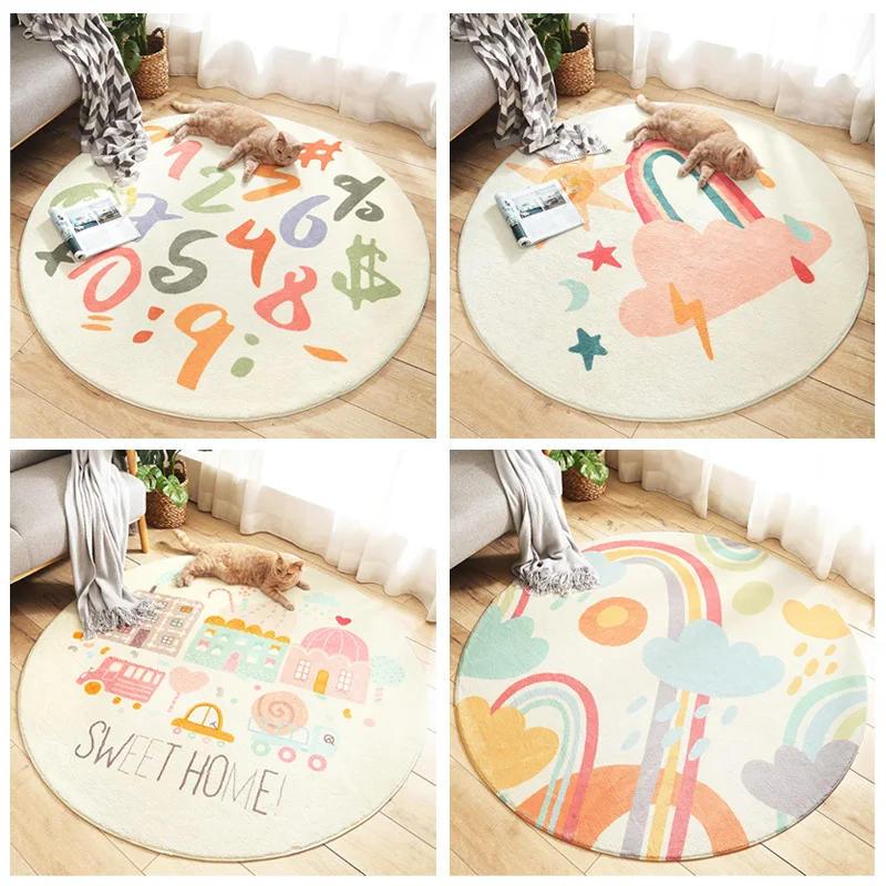 ковер в спальню декор комнаты Мультяшный круглый ковер для детской спальни, домашний ковер для гостиной, нескользящий ковер для дивана, татами, ковер, детский коврик для ползания