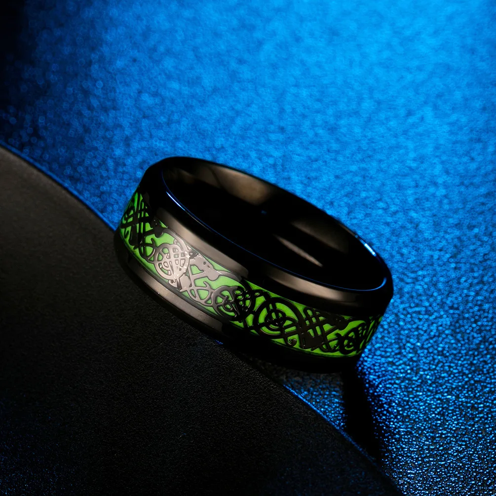 Мужское кольцо из нержавеющей стали 8 мм с инкрустацией дракона красное зеленое черное кольцо из углеродного волокна обручальное кольцо ювелирные изделия