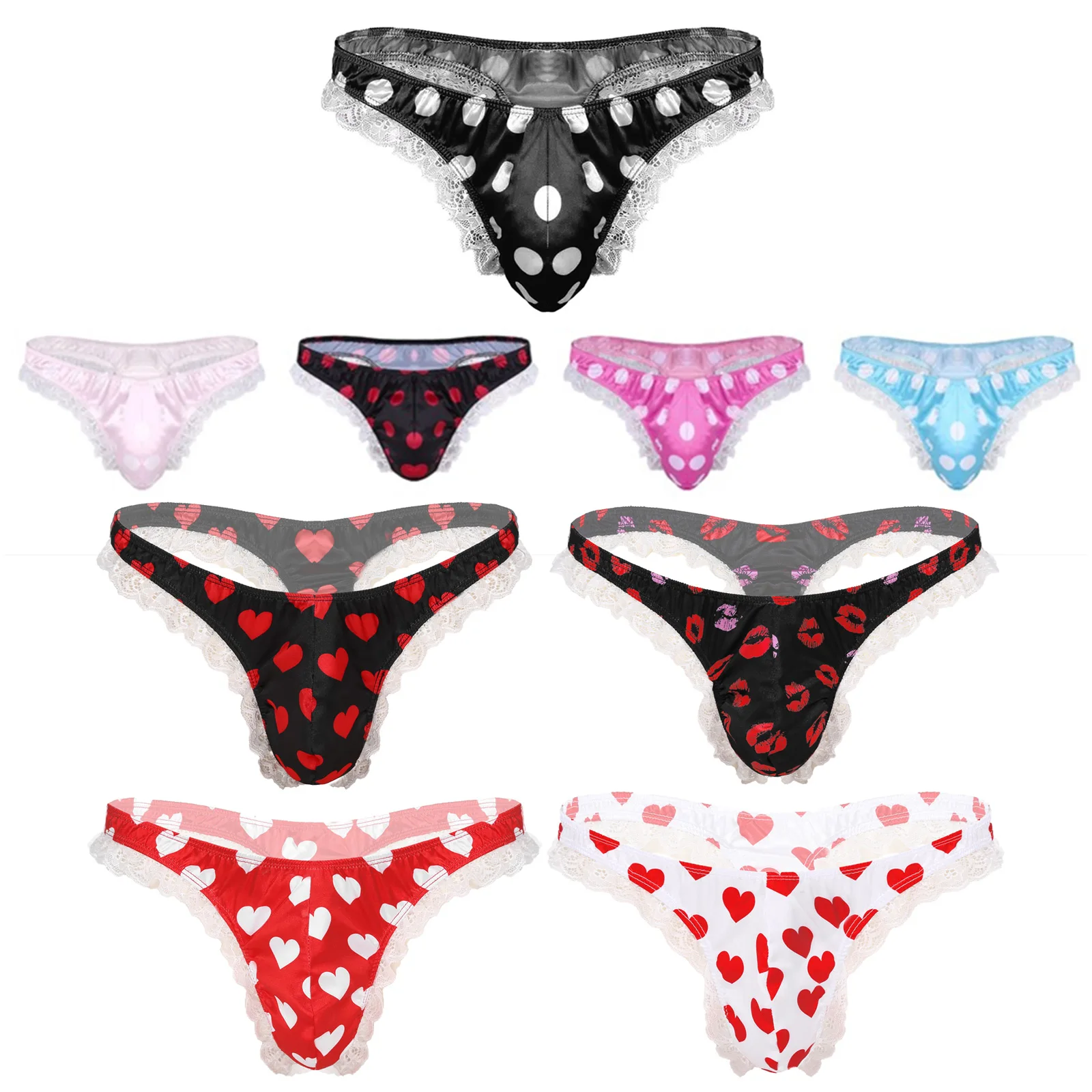 Мужские трусы брифы в горошек, синие кружевные Трусы-стринги с высокой посадкой и оборками, сексуальное нижнее белье для мужчин, гей-трусы