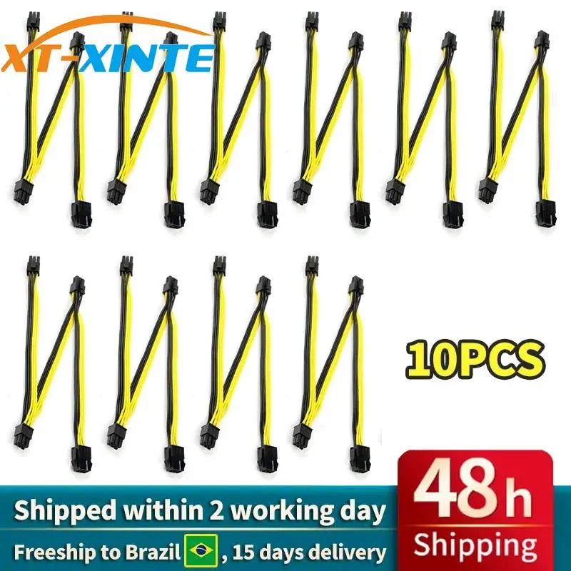 XT-XINTE 10pcs PCI-E PCIe 6Pin Female to 3 6P Male PCI Express Extension Cable Power Supply 20cm for Graphics Video Card Adapter Miner
