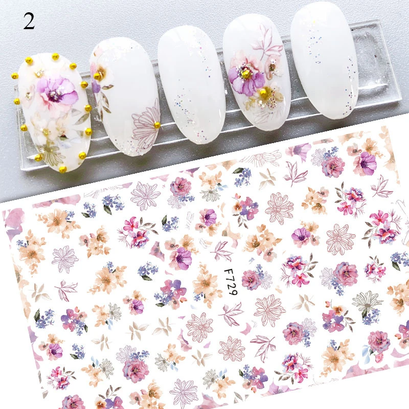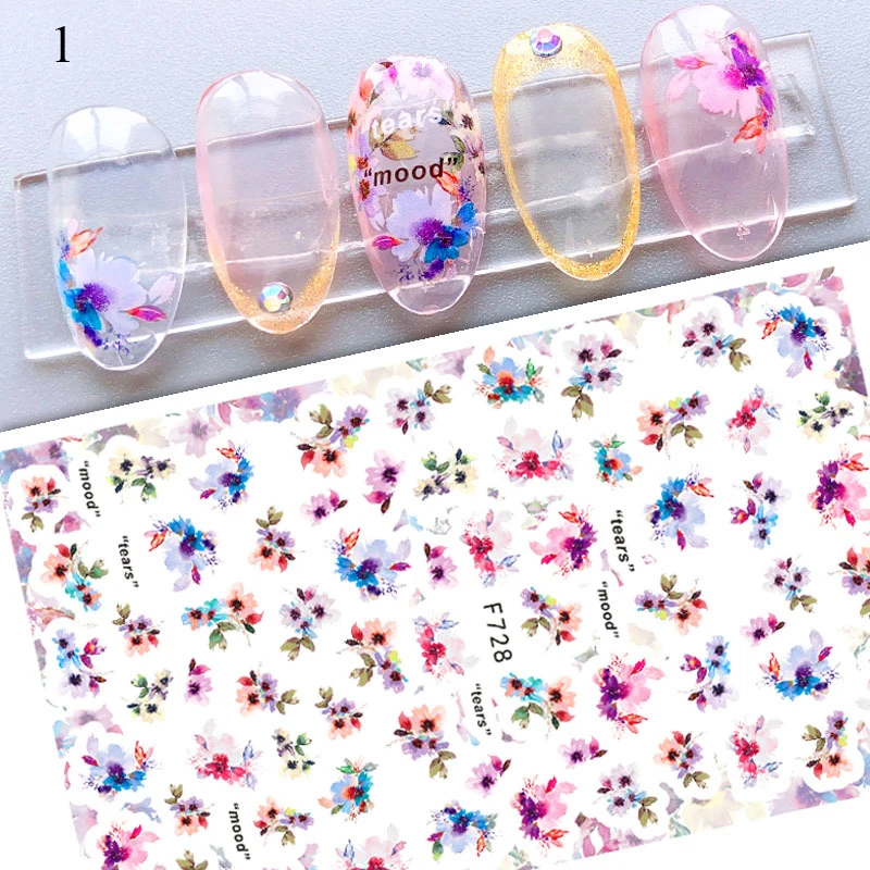 Наклейки для ногтей, самоклеящиеся, с объемными фиолетовыми цветами, бабочками