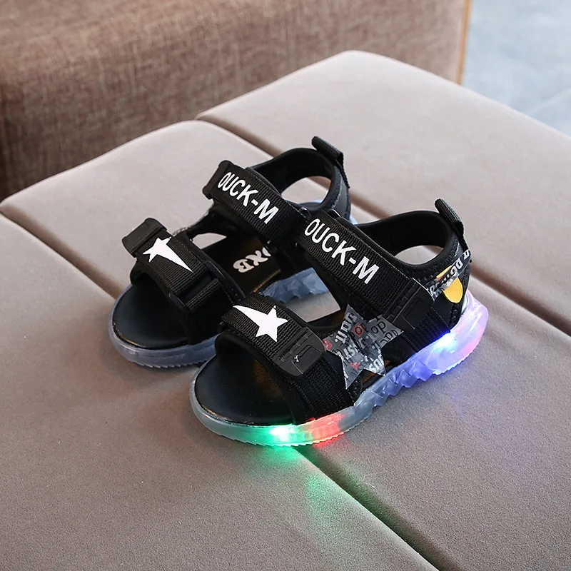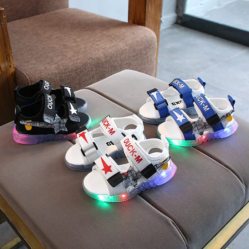 Детские светящиеся пляжные туфли, сандалии со светодиодной подсветкой, мягкая подошва, обувь для начинающих ходить детей, размеры 21-30