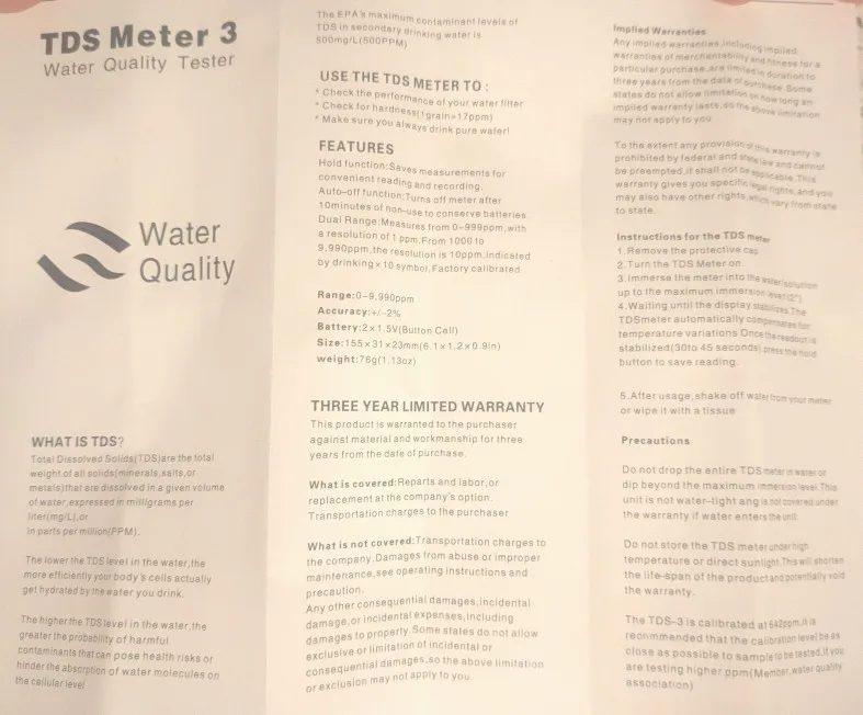 Для индивидуального потребления может подойти на три с плюсом. Обычно измерение ppm я провожу в сравнении с прибором от Xiaomi. При измерении воды из крана погрешность составляет 6-7%. Погрешность при измерении чистой воды составляет уже 35%. Этот прибор показывает более заниженные показатели по сравнению с Xiaomi. Конструкция этого прибора гораздо лучше, чем более ранние аналоги. Особенно нравится применение батарейки CR2032, хороший экран, кнопки.
