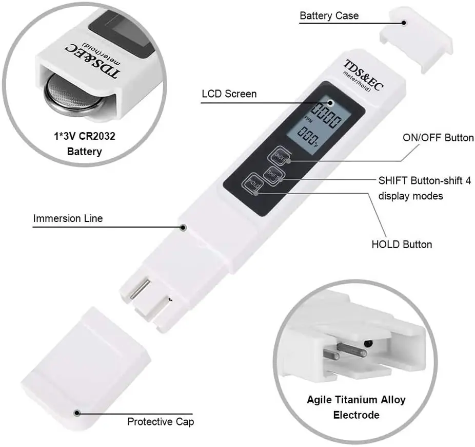 TDS EC метр TDS3 Цифровой тестер качества воды, многофункциональный измеритель температуры и чистоты воды,