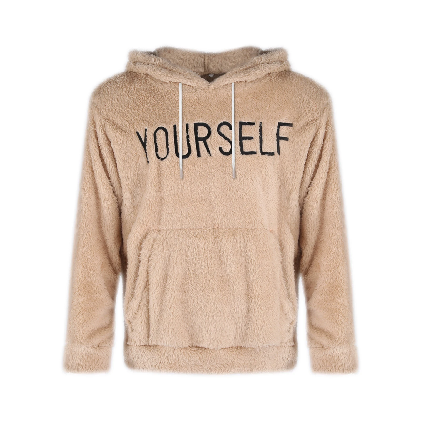 Мужская пушистая флисовая толстовка, повседневный зимний теплый пуловер с капюшоном и надписью и карманом кенгуру, новые модные толстовки