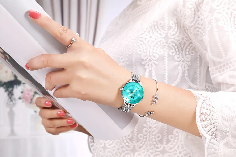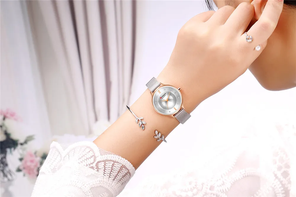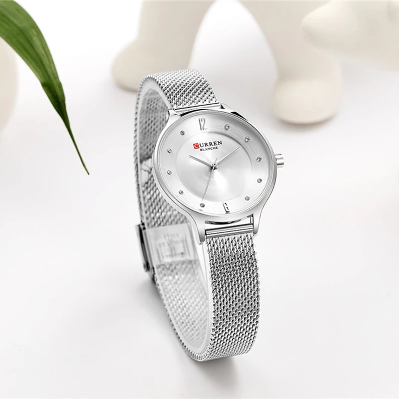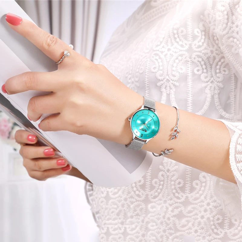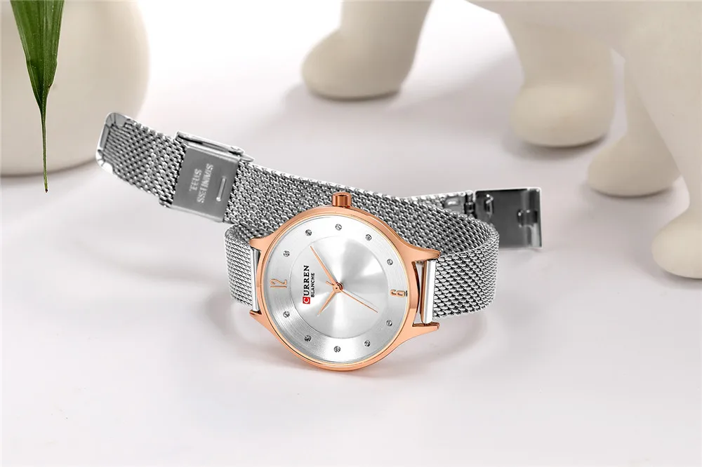 Женские кварцевые часы с сетчатым браслетом из нержавеющей стали
