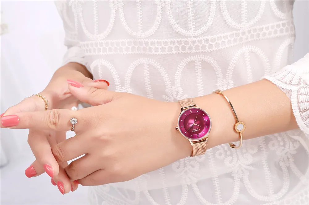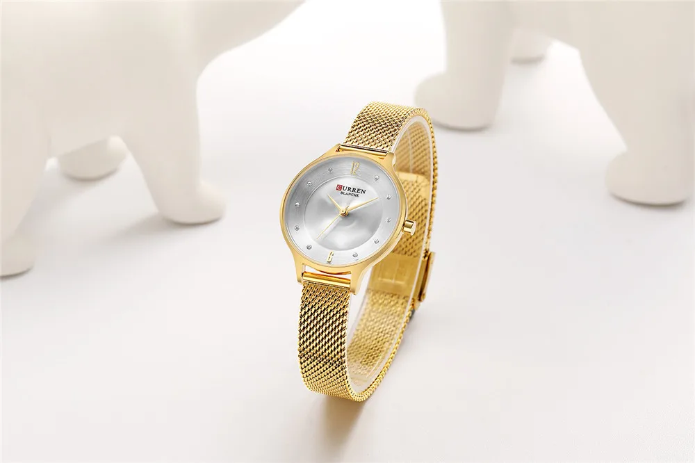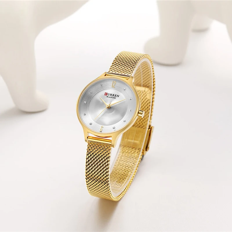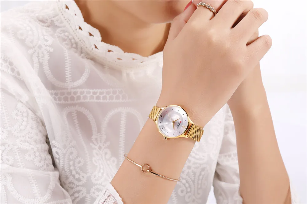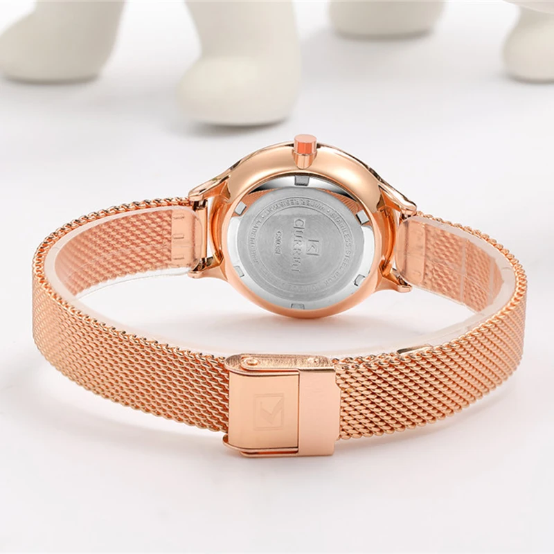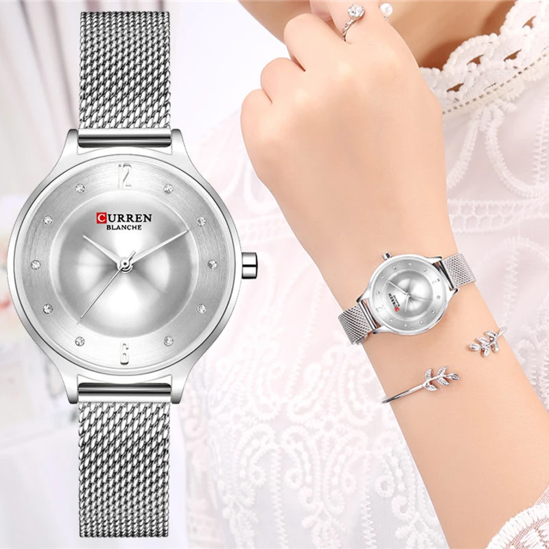 Женские кварцевые часы с сетчатым браслетом из нержавеющей стали