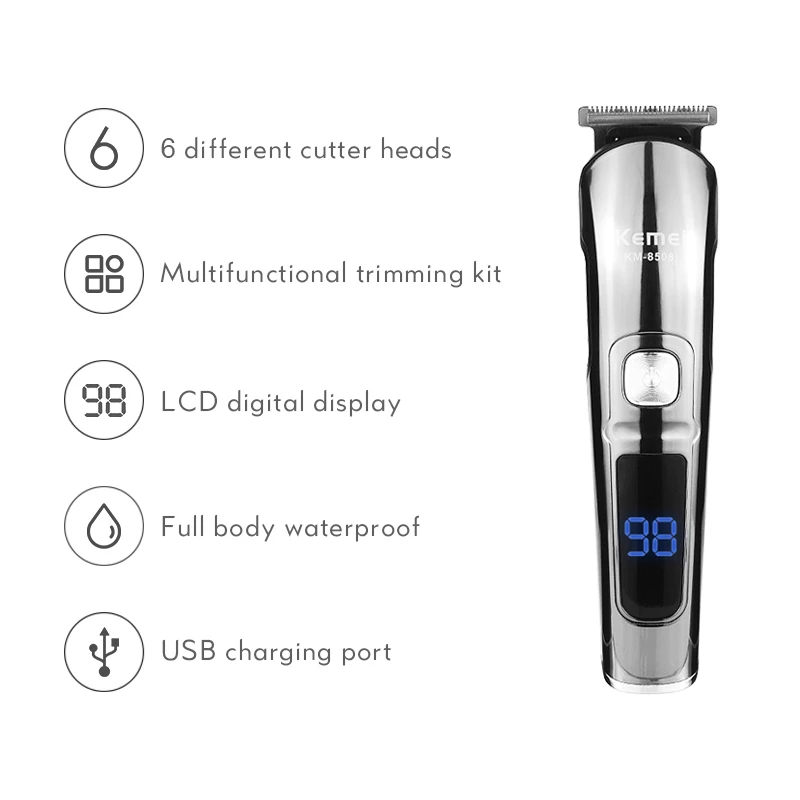 Многофункциональная машинка для стрижки волос Kemei 6 в 1, водонепроницаемый профессиональный триммер для бороды со светодиодным дисплеем, Машинка для стрижки волос для взрослых и детей F35