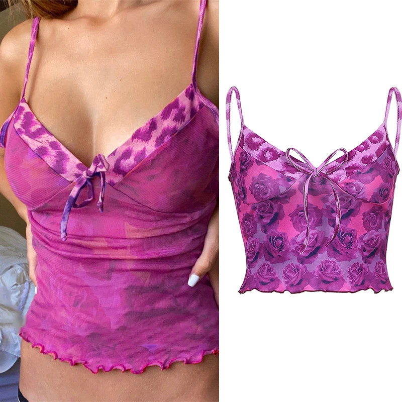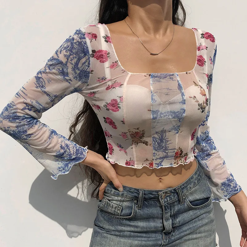 Женская Сетчатая футболка с цветочным принтом ArtSu Y2K, в стиле пэ...
