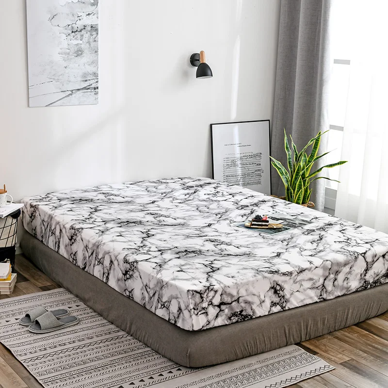 Простыня с мраморным узором, Высокоэластичный мягкий дышащий матрас...