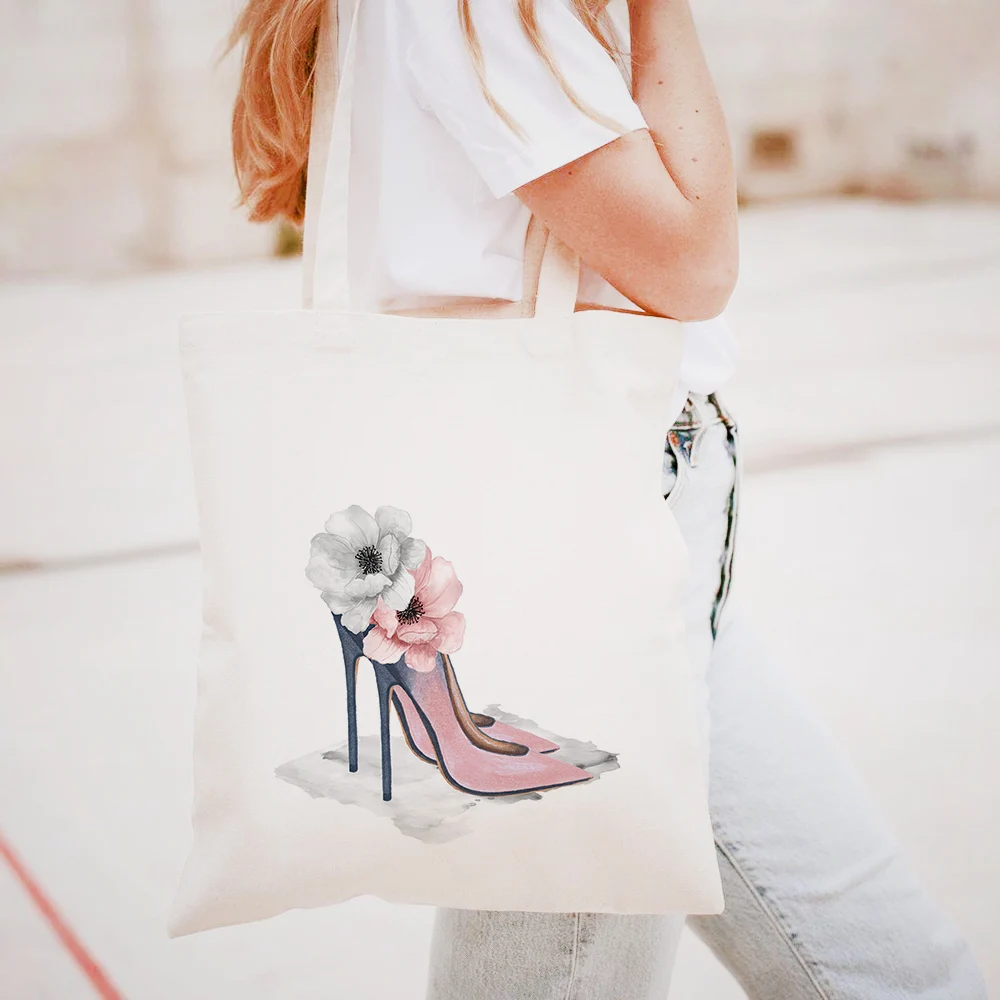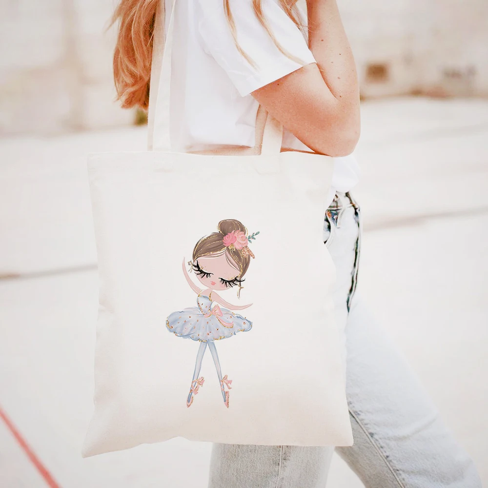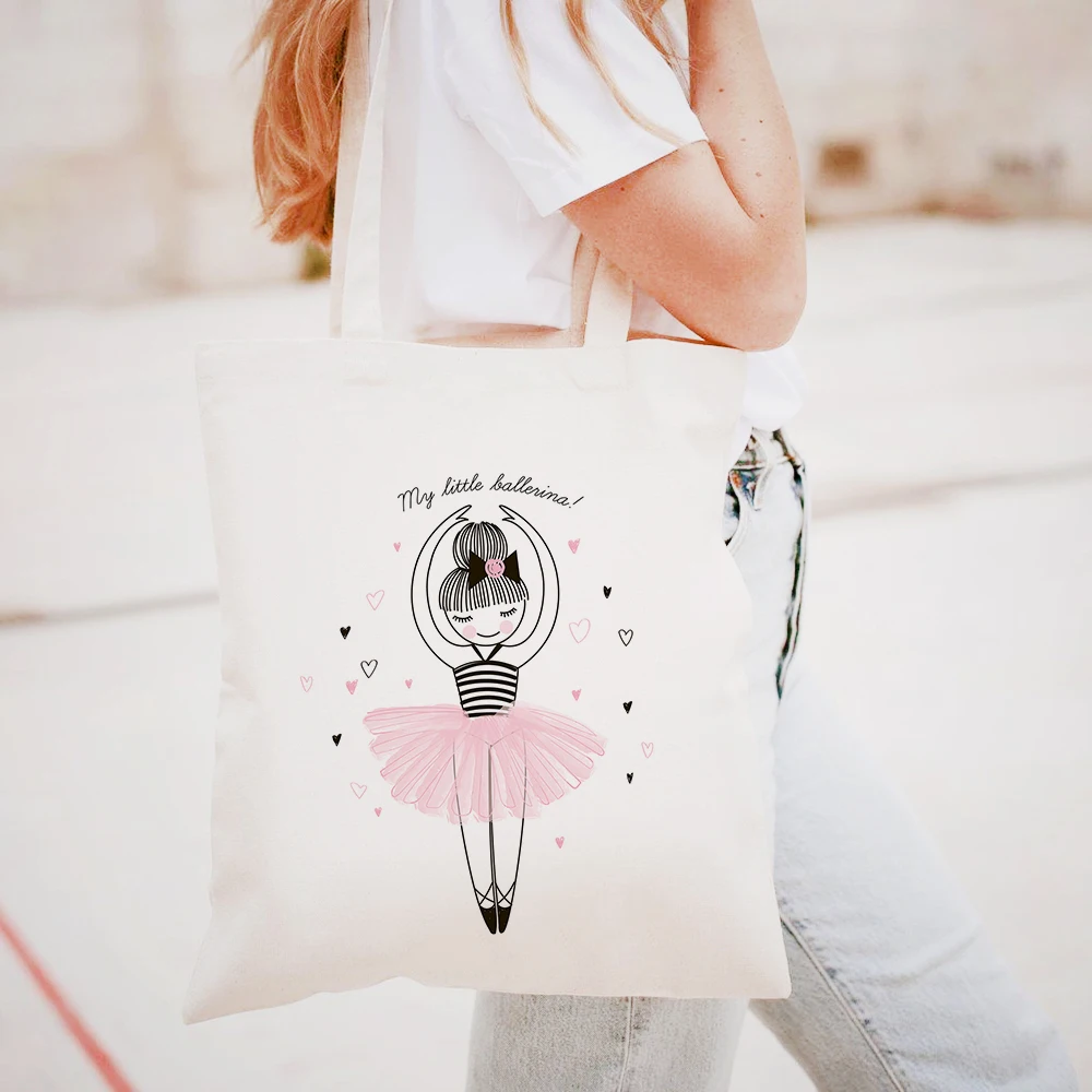 Женская сумка-тоут с принтом для танцев, белая холщовая сумка на плечо, розовая сумка с цветами из мультфильма, женская уличная сумка для покупок, подарки для девушек