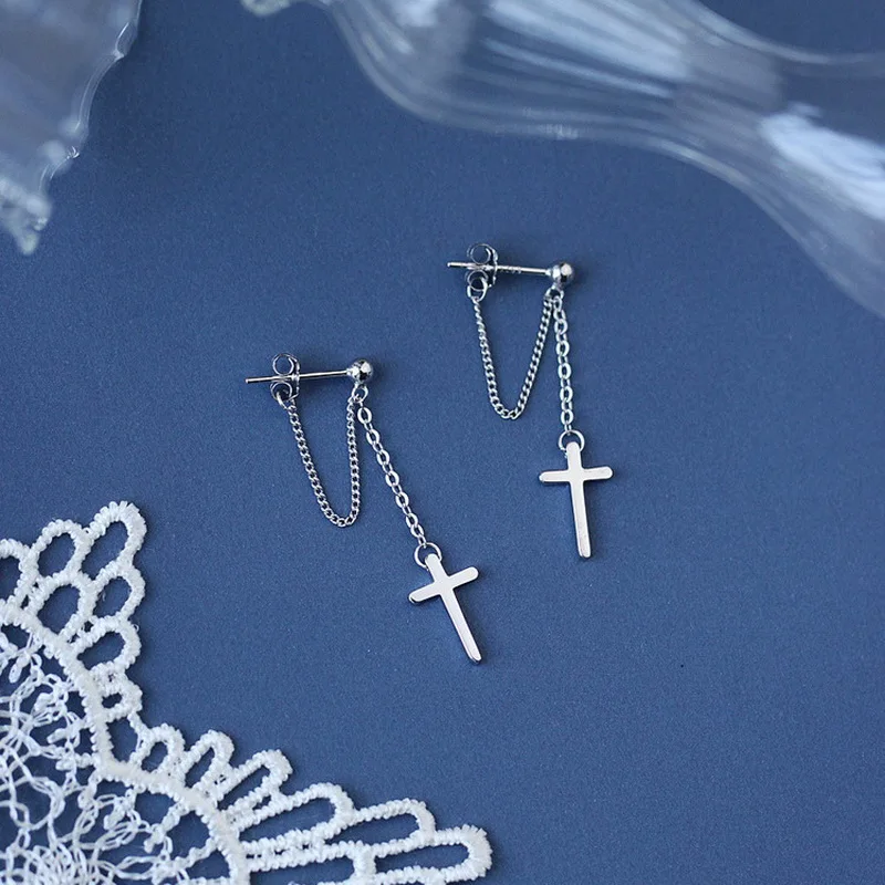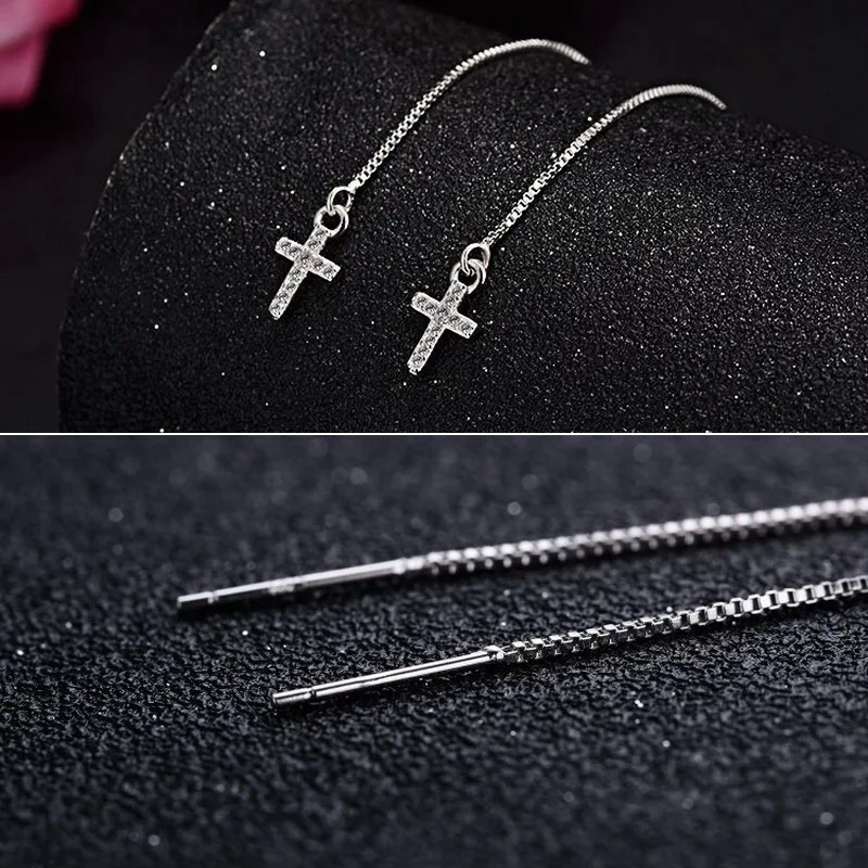 Серьги-подвески женские с крестом, длинные висячие украшения для уш...