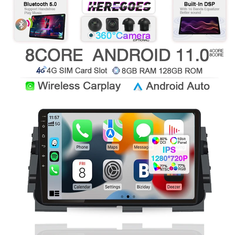 Carplay 9 "DSP Android 11,0 8 ГБ + 128 ГБ Автомобильный DVD-плеер а...