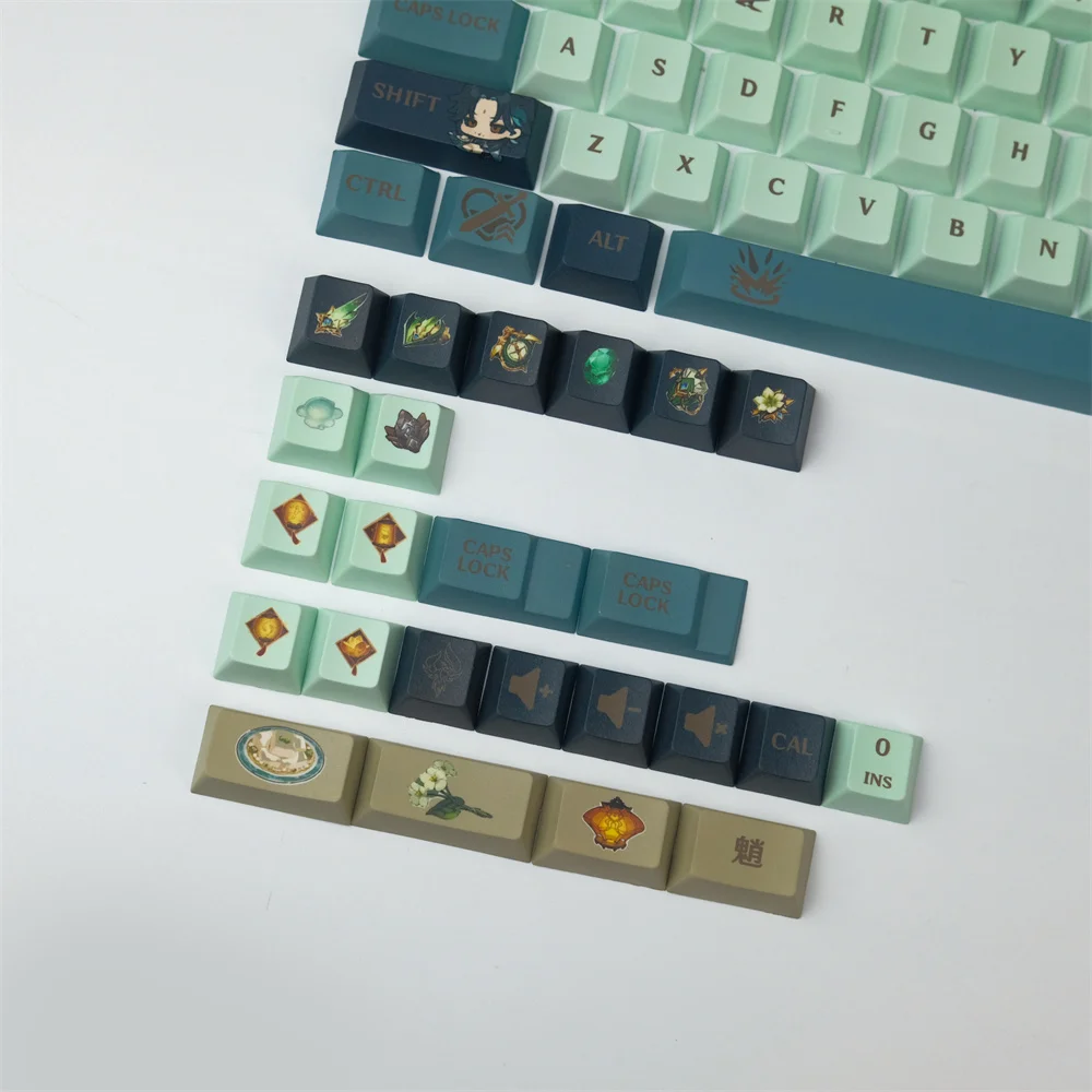 Колпачки для клавиш Genshin impact Xiao PBT, механические колпачки для клавиатуры с сублимационной печатью, колпачок для клавиатуры Cherry Profile для MX Switch GH60GK61GK64, 128 клавиш
