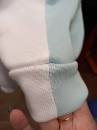 Заказали размер S, хорошо село на тело. Если по свободнее можно и М. Ткань приятная на ощупь, но тонкая, не как у обычных стандартных трикотажных толстовках. Заказ был совершенно 11.11. и пришёл 23.11.
