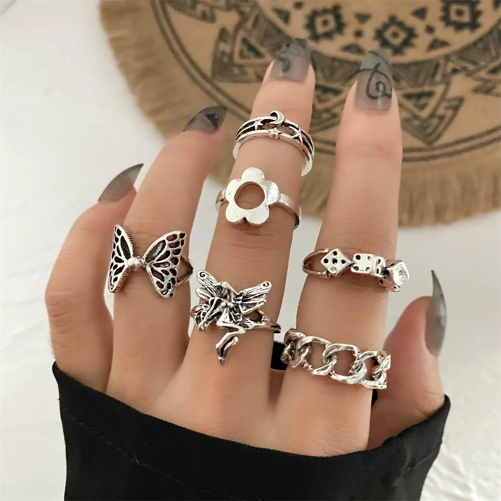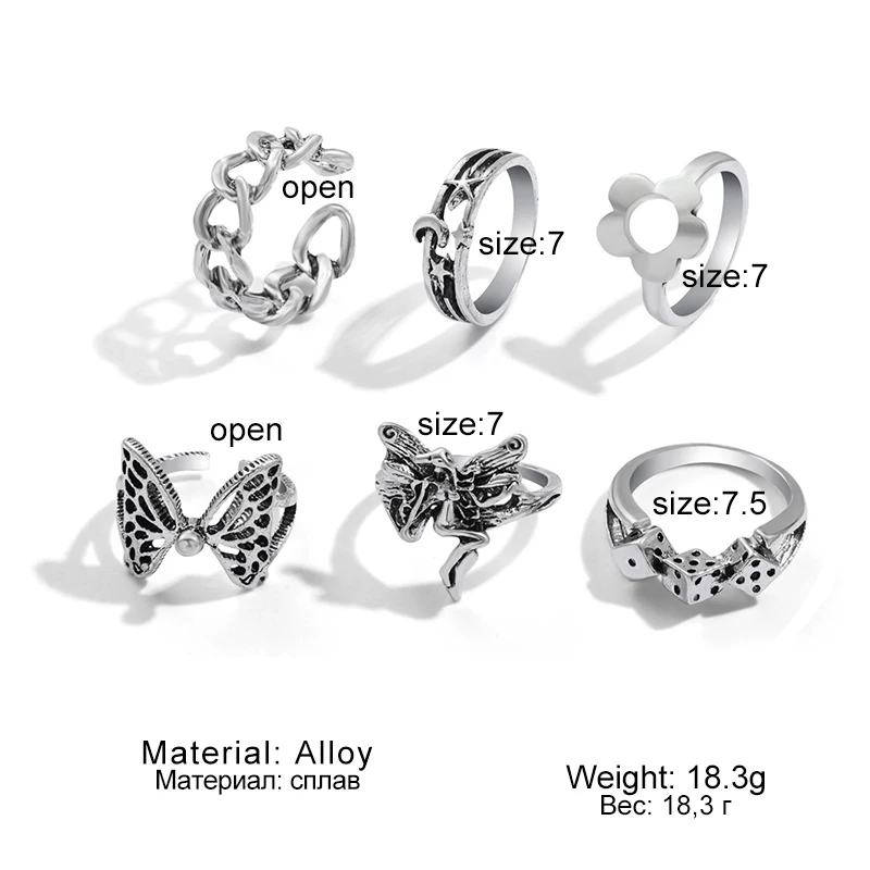 Набор женских колец в стиле панк, Бабочка, эльф, цветок, кольцо на ...