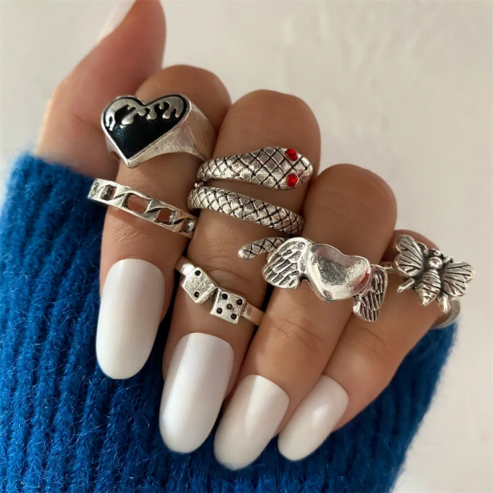 Женский комплект вечерние кольца и кольца, в стиле панкГотика