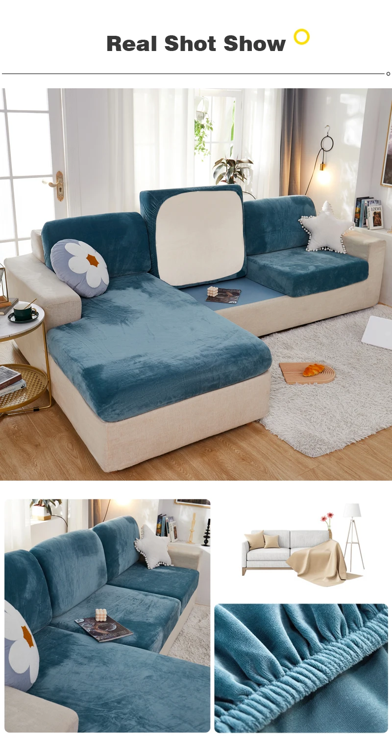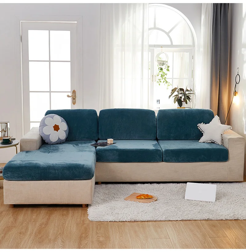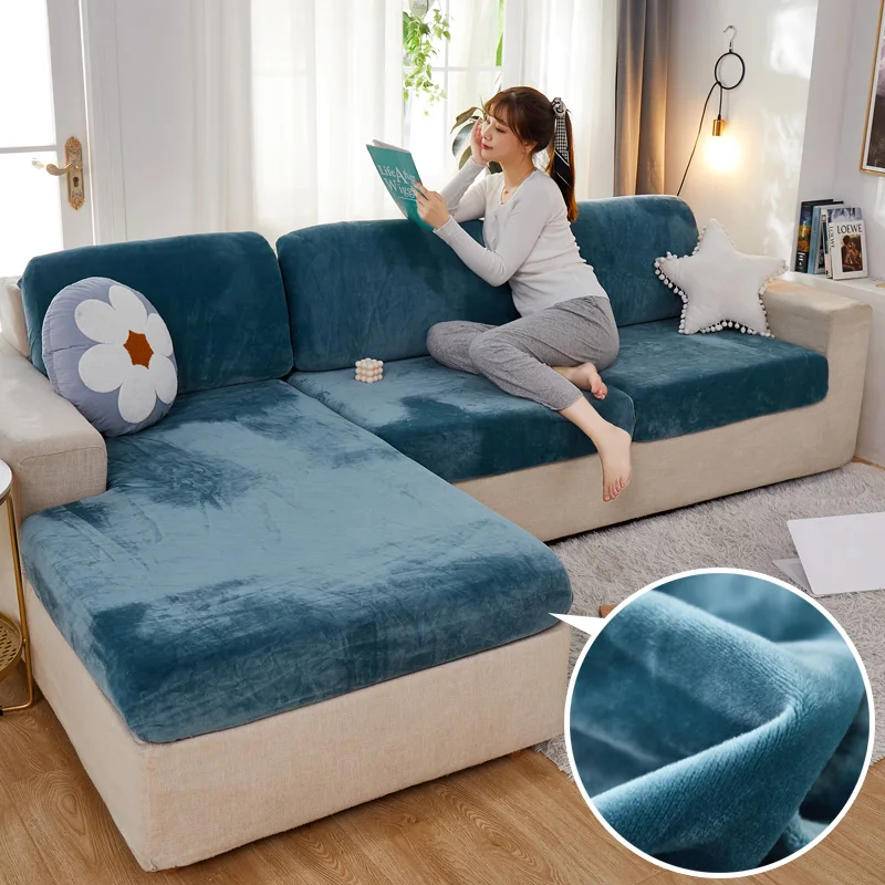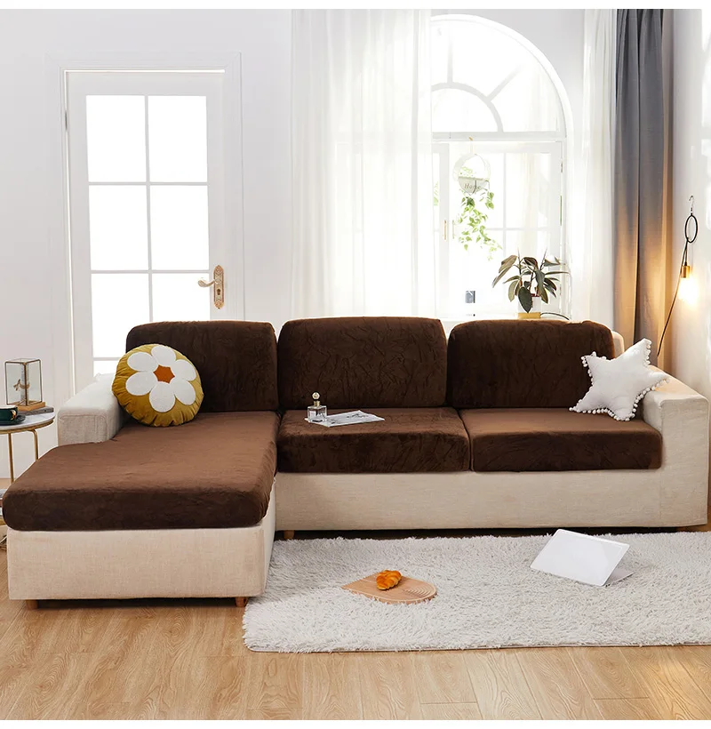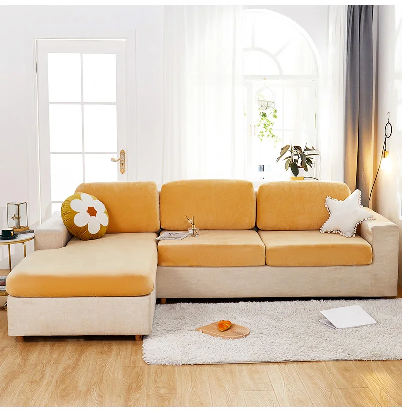 Эластичные чехлы на сиденья для гостиной, 3 места, бархатный эластичный Комплект подушек, шезлонг, роскошный угловой L-образный диван для мебели