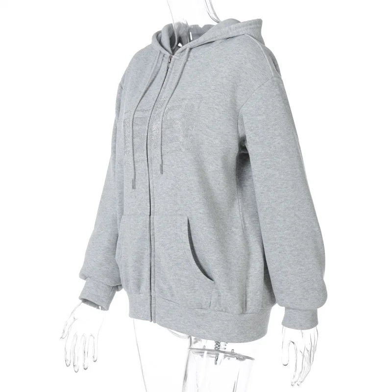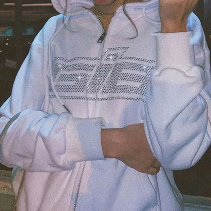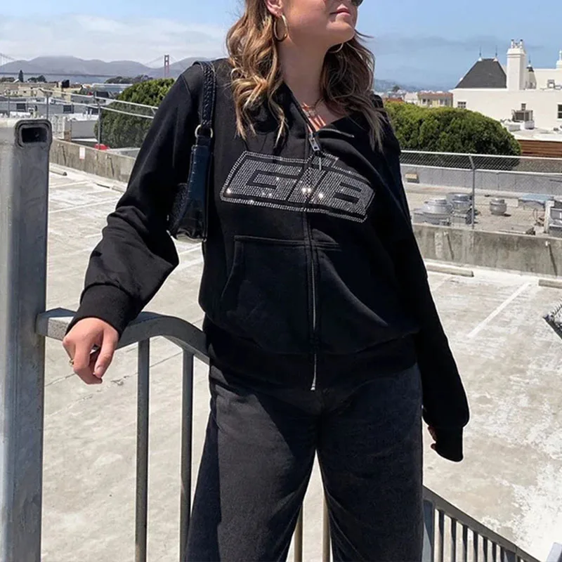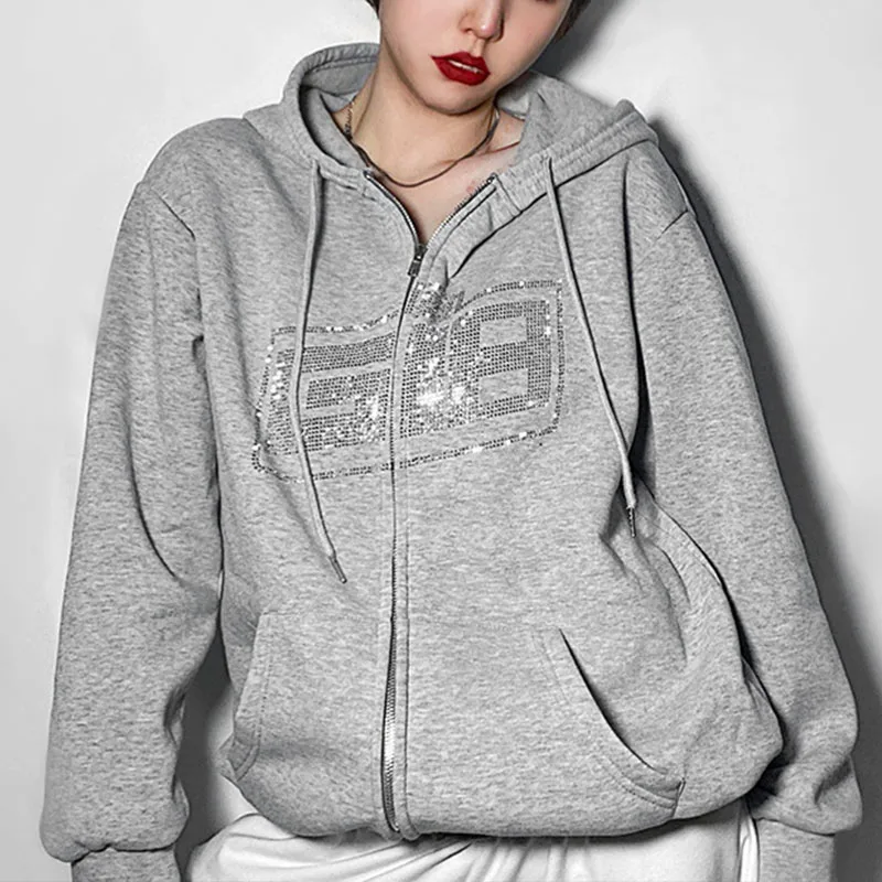 Y2K модные стразы на молнии, толстовки большого размера, E-girl, ви...