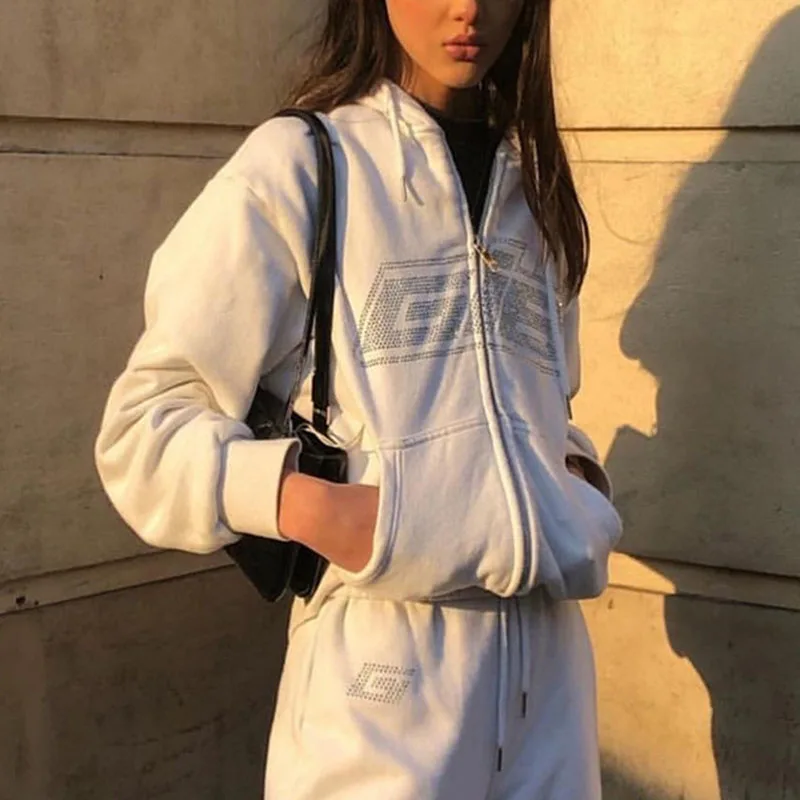 Спортивный костюм на молнии Cyber Y2K с капюшоном Rinestone Женская...