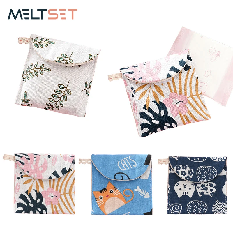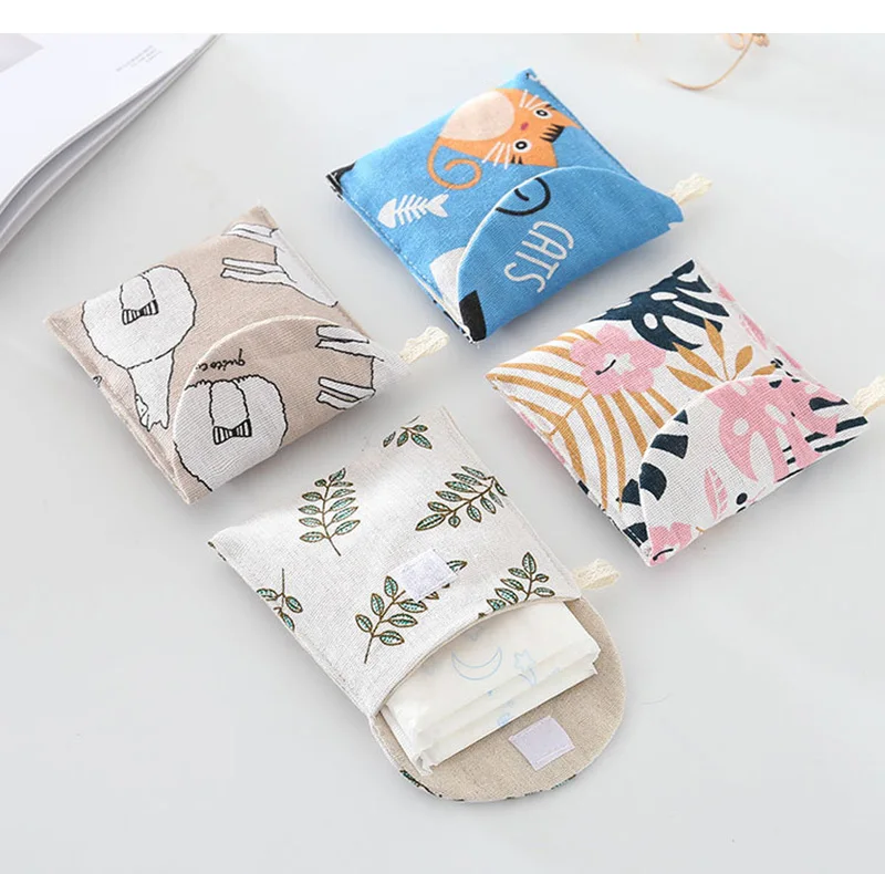Холщовый женский кошелек для монет, мультяшная гигиеническая прокла...