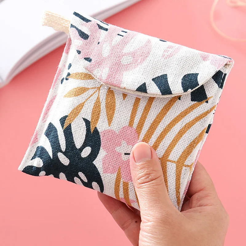 Сумка для хранения гигиенических салфеток из хлопка и льна, женский косметический Органайзер для губной помады, держатель для тампона, кошелек для монет