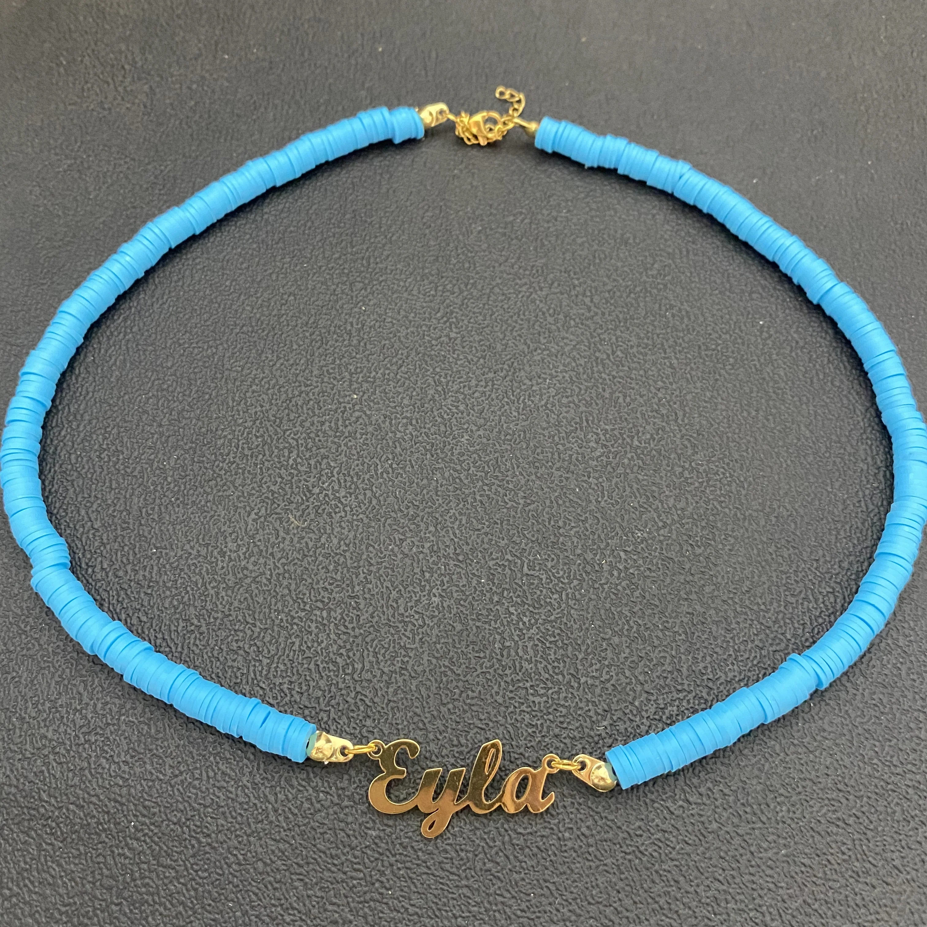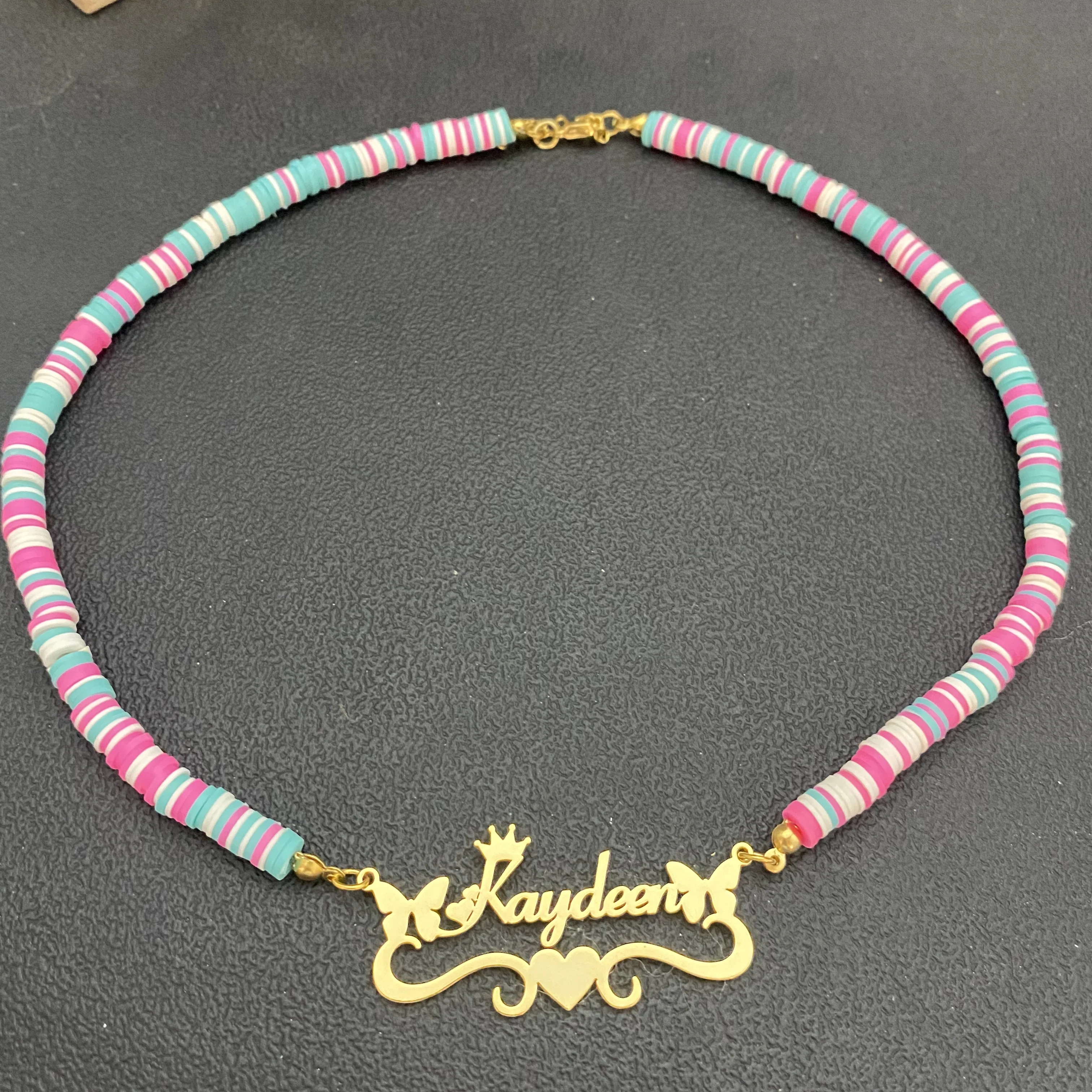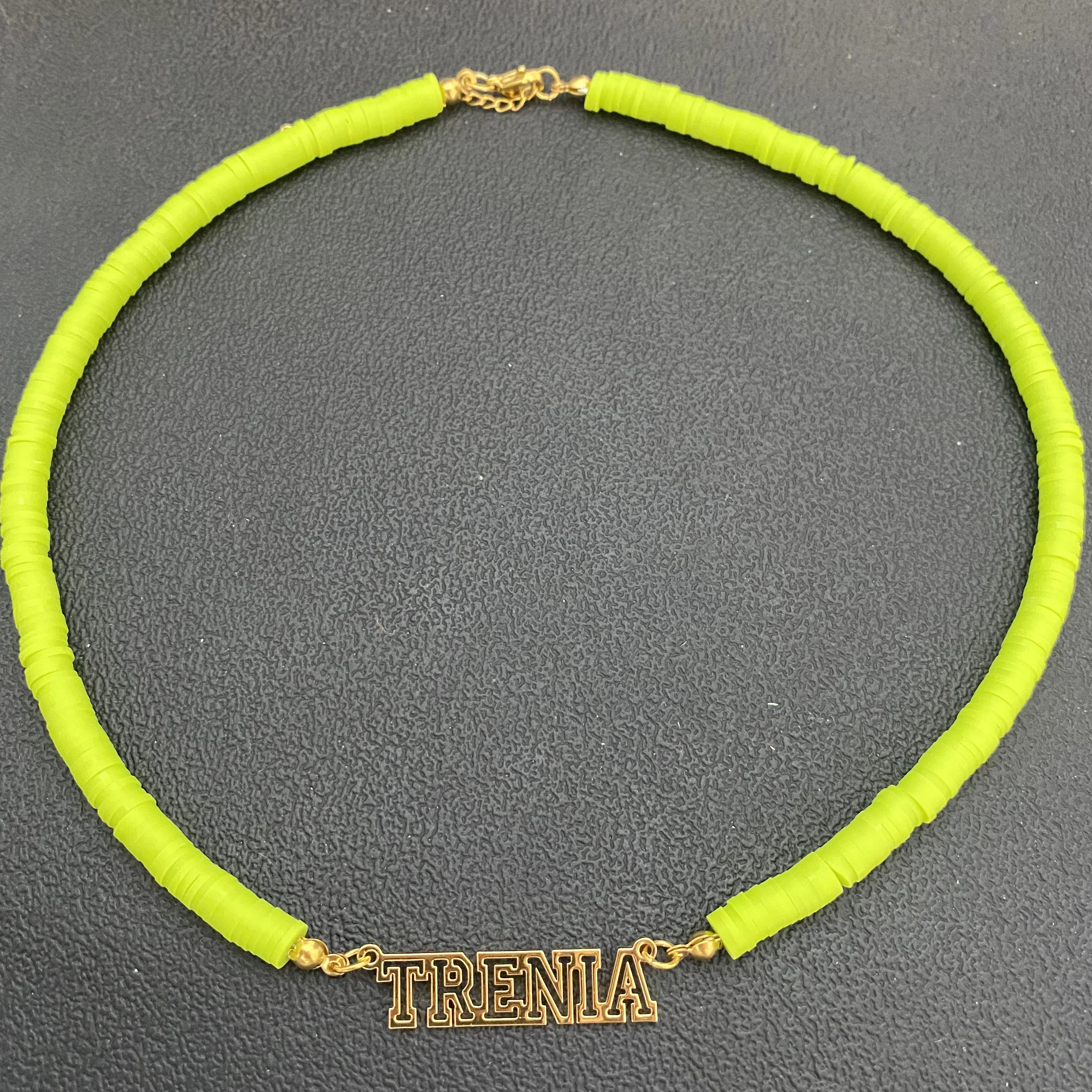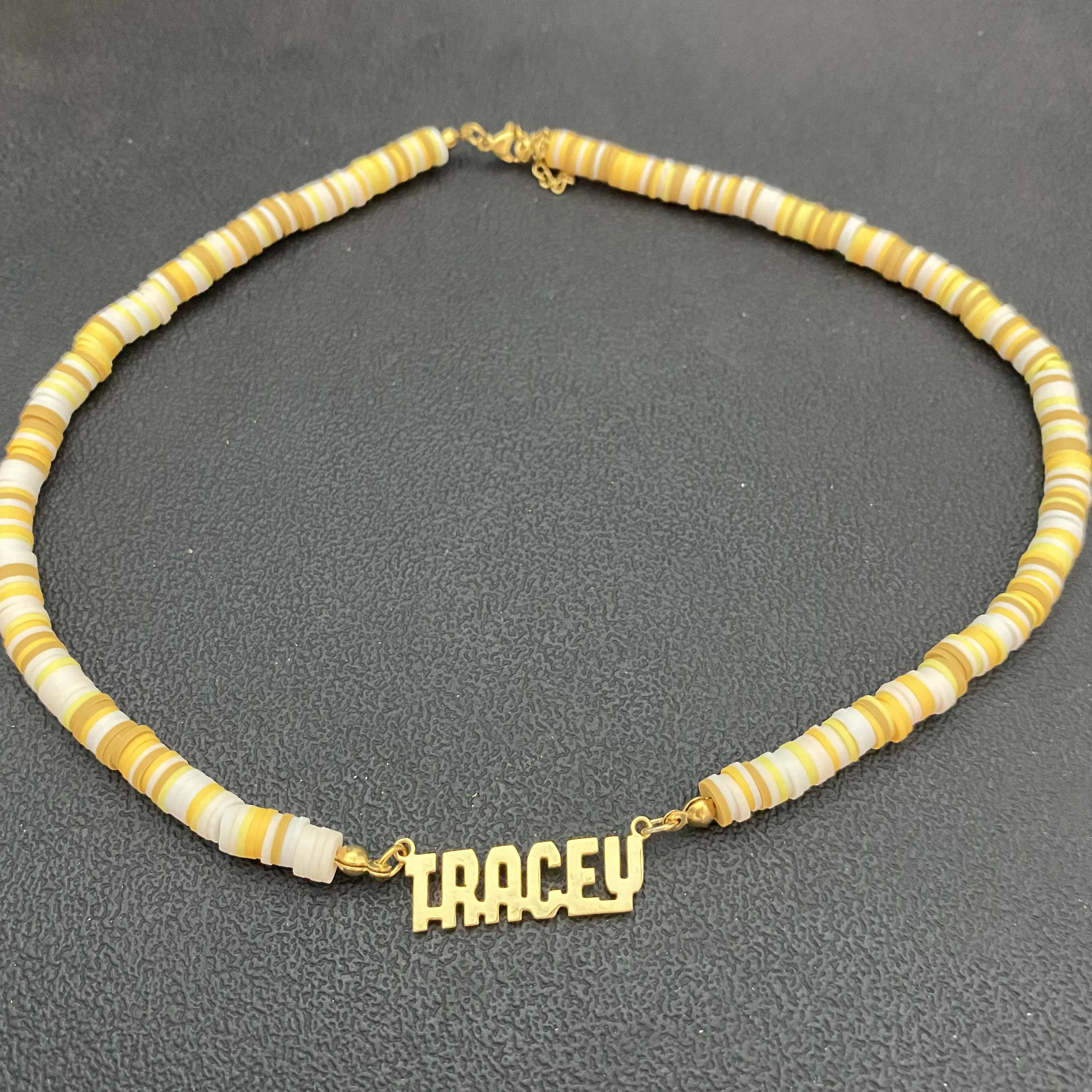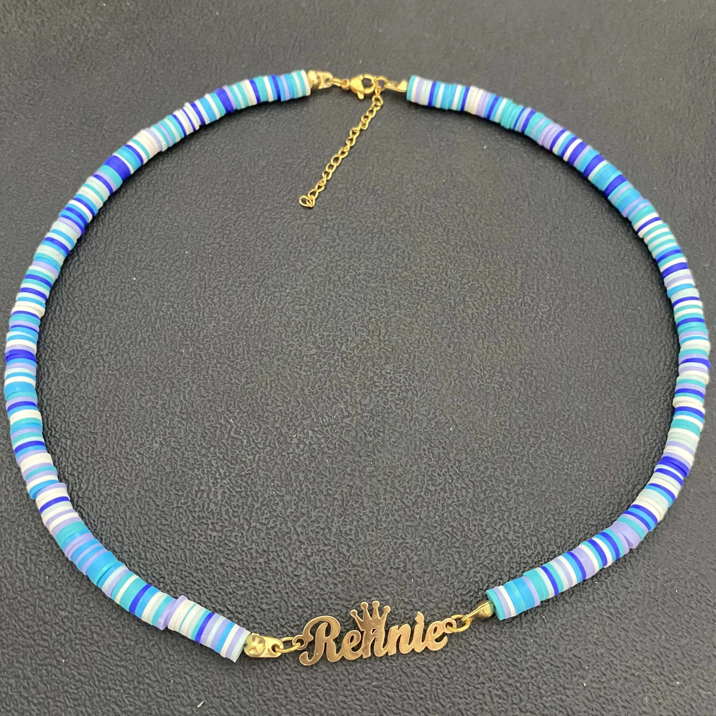 украшения на шею ожерелье из Глиняное ожерелье с именем на заказ, персонализированное мягкое керамическое ожерелье-чокер с именной табличкой из нержавеющей стали в стиле бохо, бриллианты для рождественских подарков