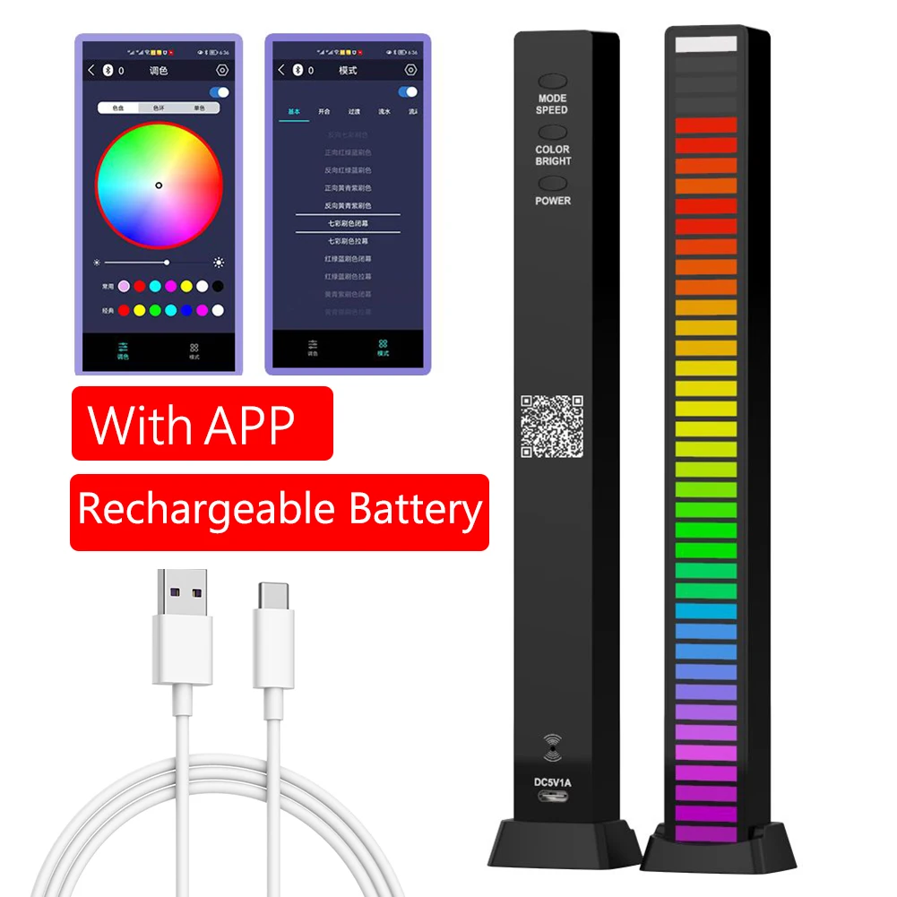 USB перезаряжаемая батарея управление через приложение RGB цветная трубка 40 светодиодный звукосниматель ритм полоска светильник музыка атмосфера окружающая лампа бар для автомобиля Вечерние