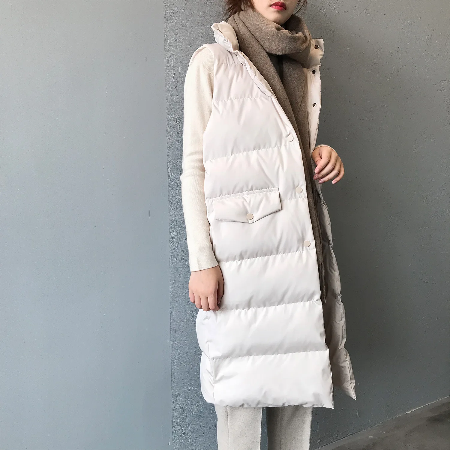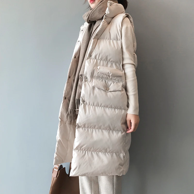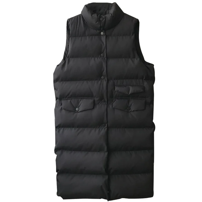 Осенне-зимний длинный жилет, Женская хлопковая куртка без рукавов, Корейская Повседневная однотонная безрукавка, модное свободное теплое пуховое пальто, женская куртка