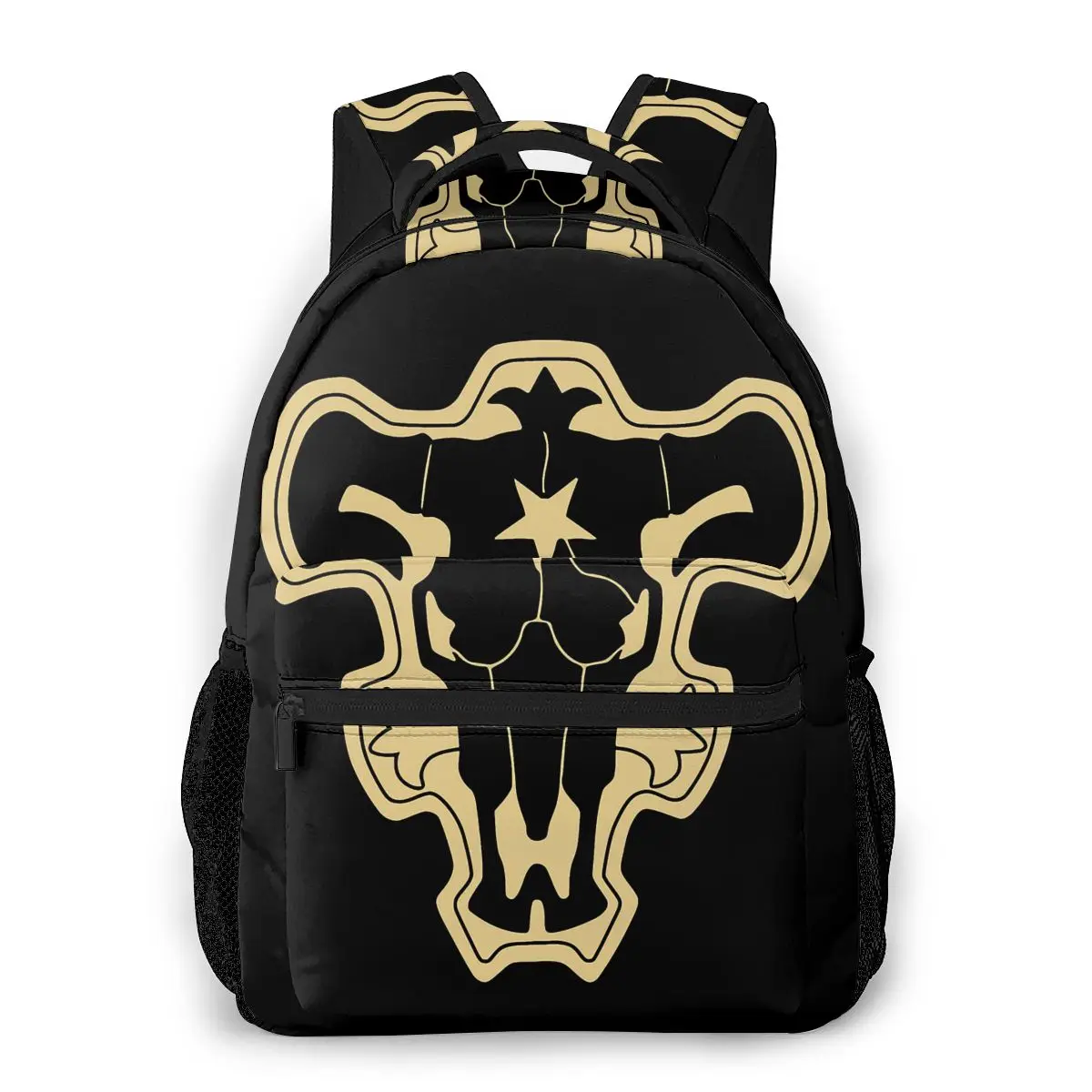 -Black Bull Crest Essential-логотип для подростков, школьная сумка, сумка для малышей, дорожный рюкзак с черным клевером, рюкзаки для мальчиков и девочек