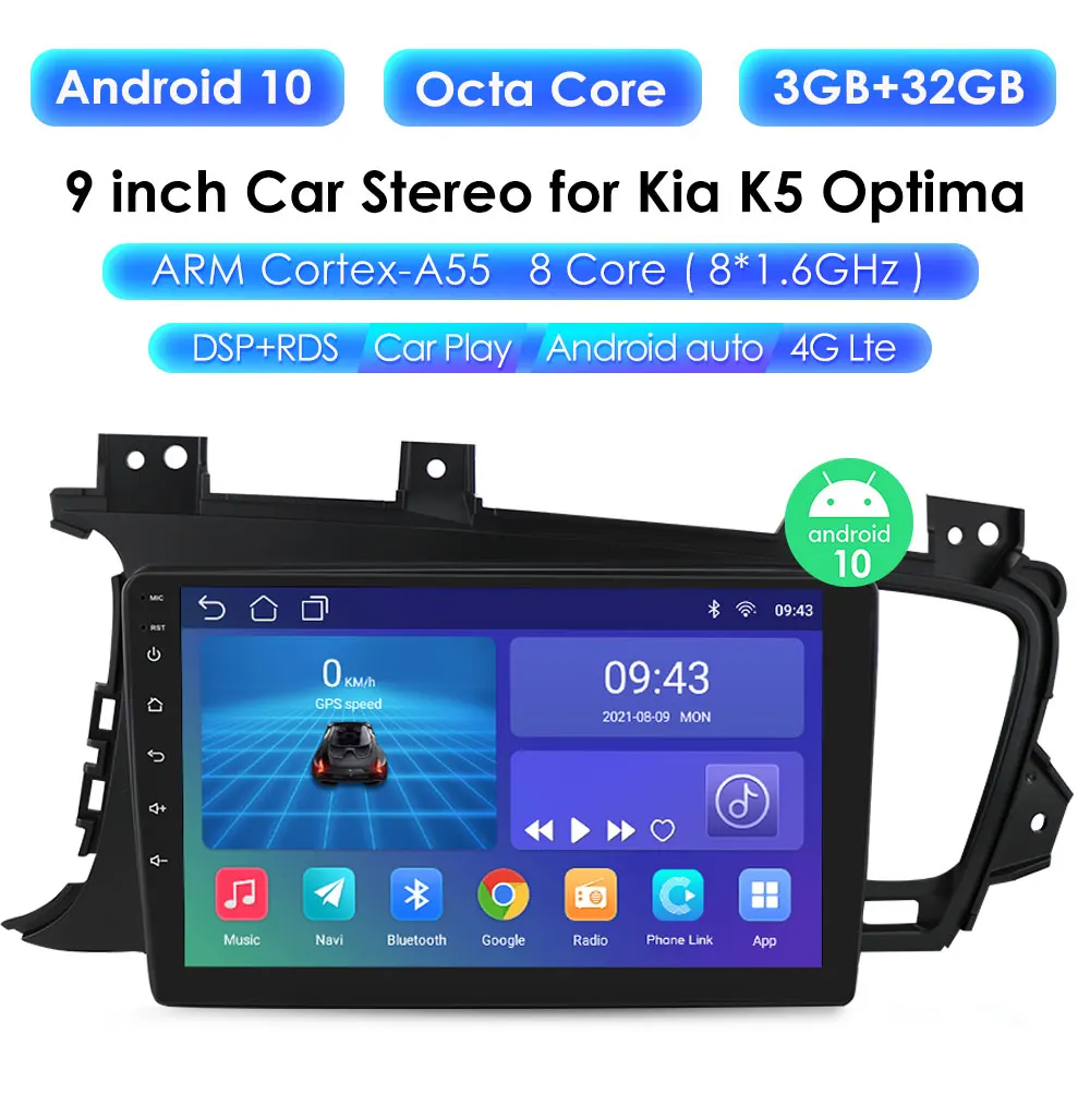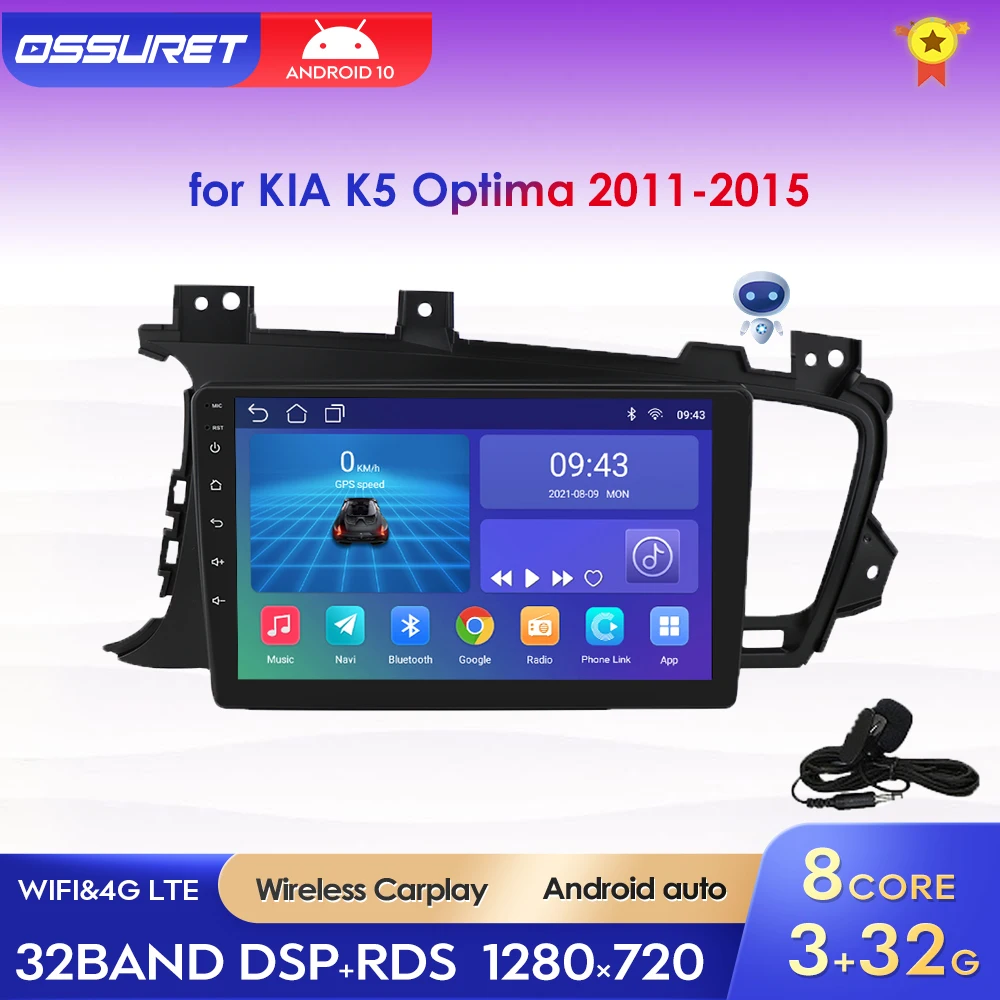 Автомагнитола на Android 10 для KIA K5 Optima TF седан 2011 - 2015 стерео радио Carplay плеер навигация GPS 2Din Wifi