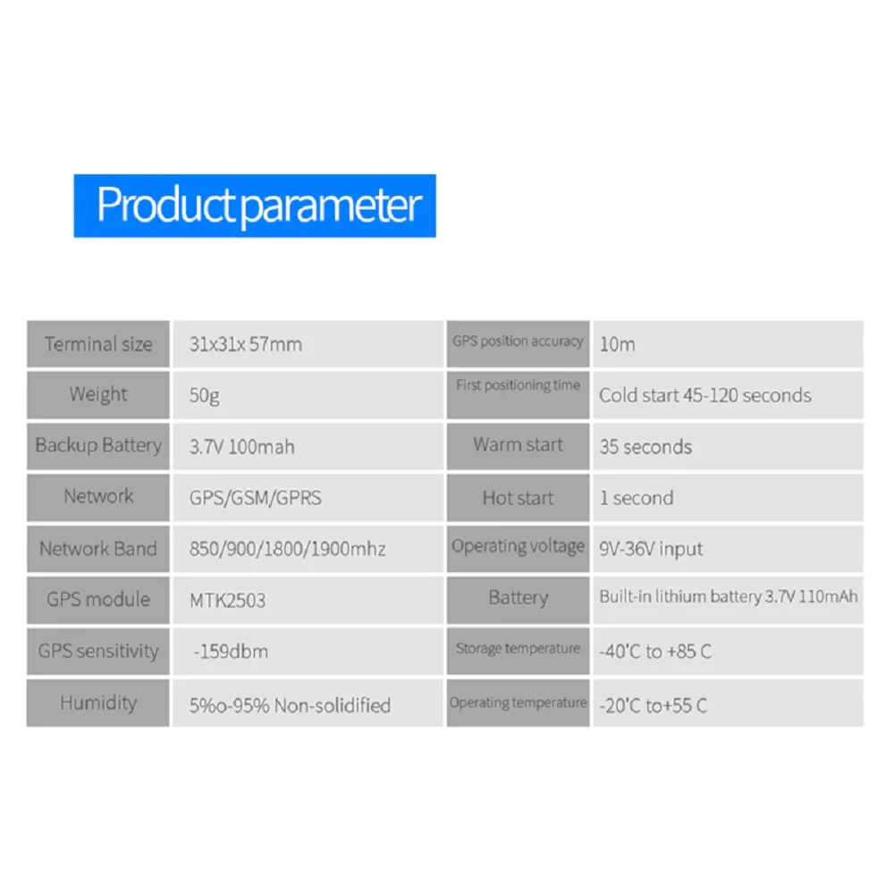 Более того, он может быть подключен непосредственно к батарее транспортного средства, может получить непрерывную мощность без подзарядки! Он поддерживает GSM четырехдиапазонную частоту (850/900/1800/1900 МГц), может отлично работать по всему миру!