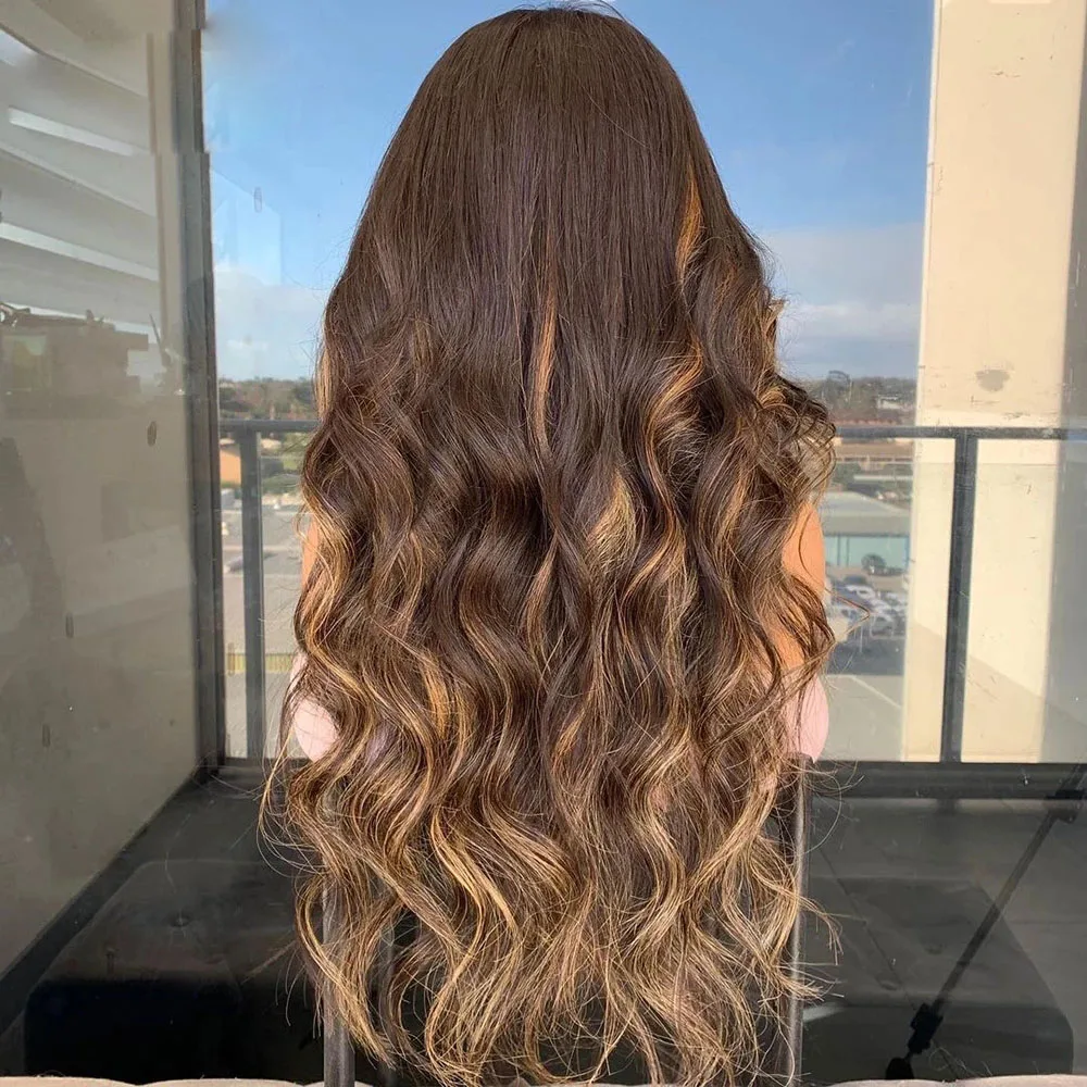 Парики с бахромой Омбре темно-коричневые волнистые 360 HD парики на...
