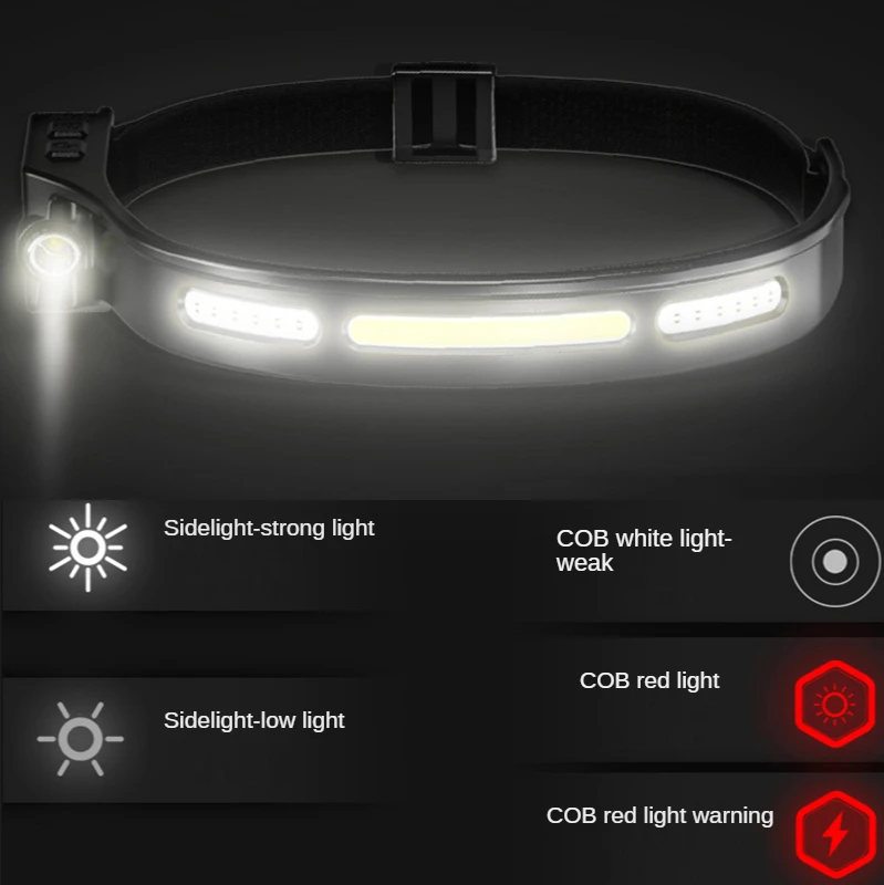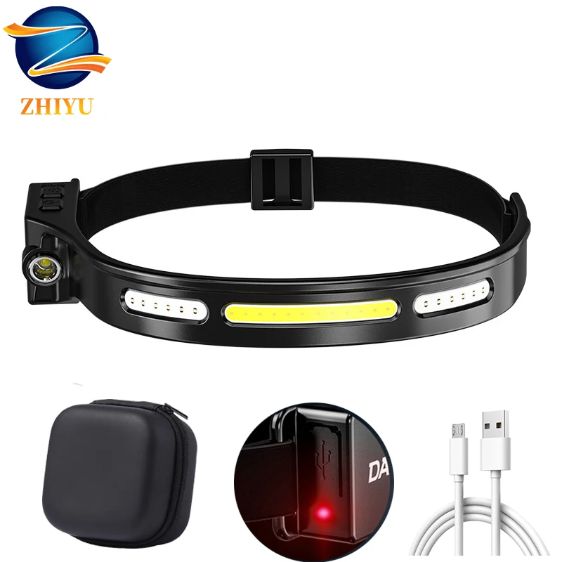 Светодиодный налобный фонарь с датчиком и зарядкой по USB, Головной фонарь со встроенным аккумулятором для кемпинга, дикой природы, спасения, рыбалки, уличный водонепроницаемый фонарь