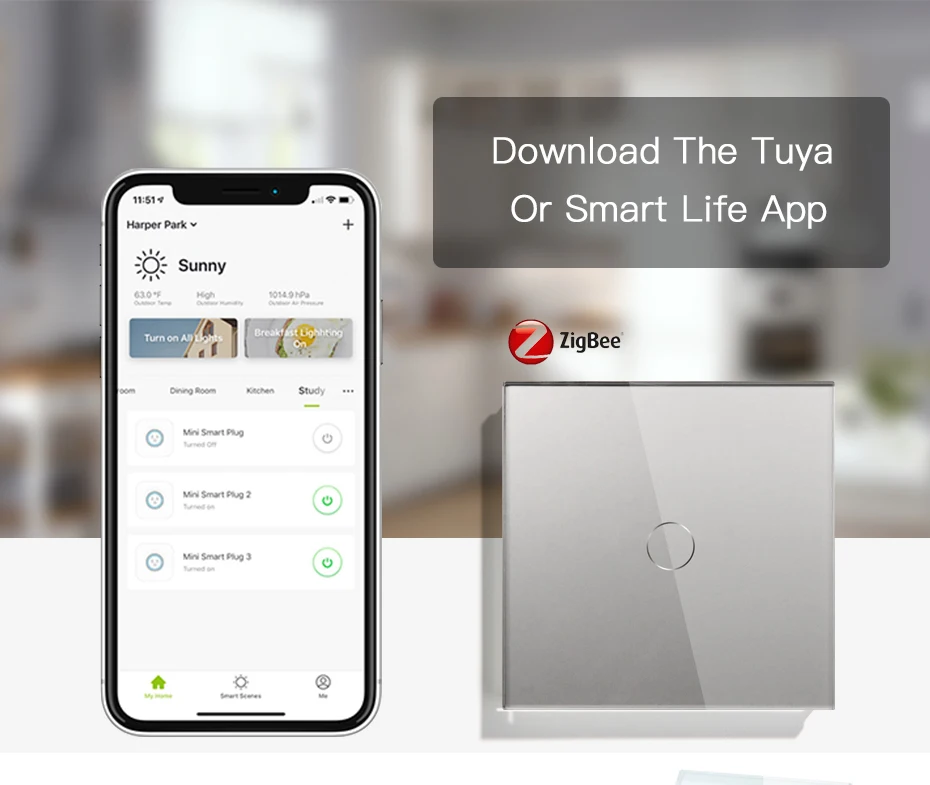 Мультиуправляемая связь: переключатели Zigbee имеют 1/2/3/4way и могут управлять одним светильник в четырех различных местах (максимум 4 способа).