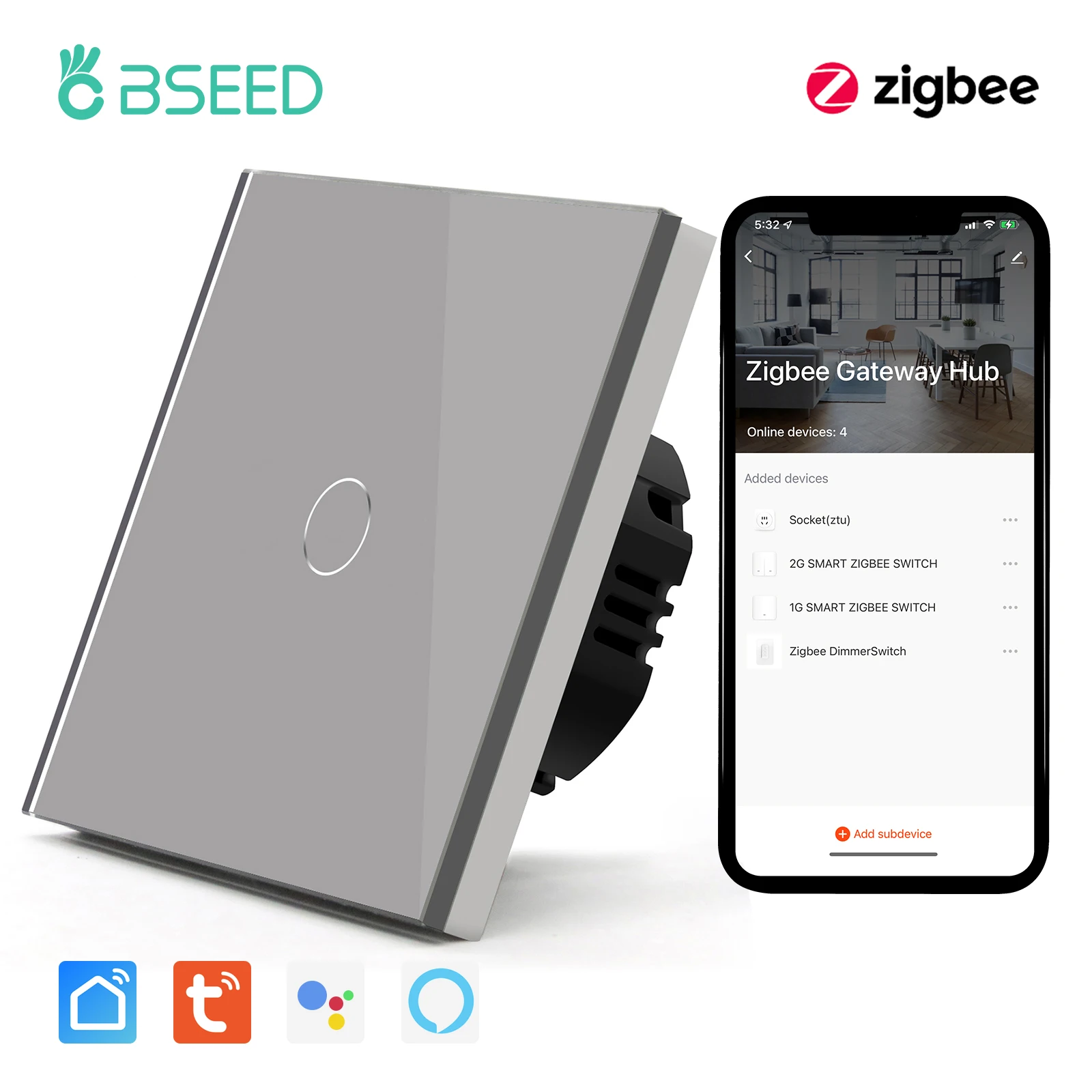 Умный светильник ель света BSEED Zigbee, настенный сенсорный переключатель с дистанционным управлением через приложение Google Alexa Tuya, с серой стеклянной панелью, без нейтрального стекла, 123 клавиши
