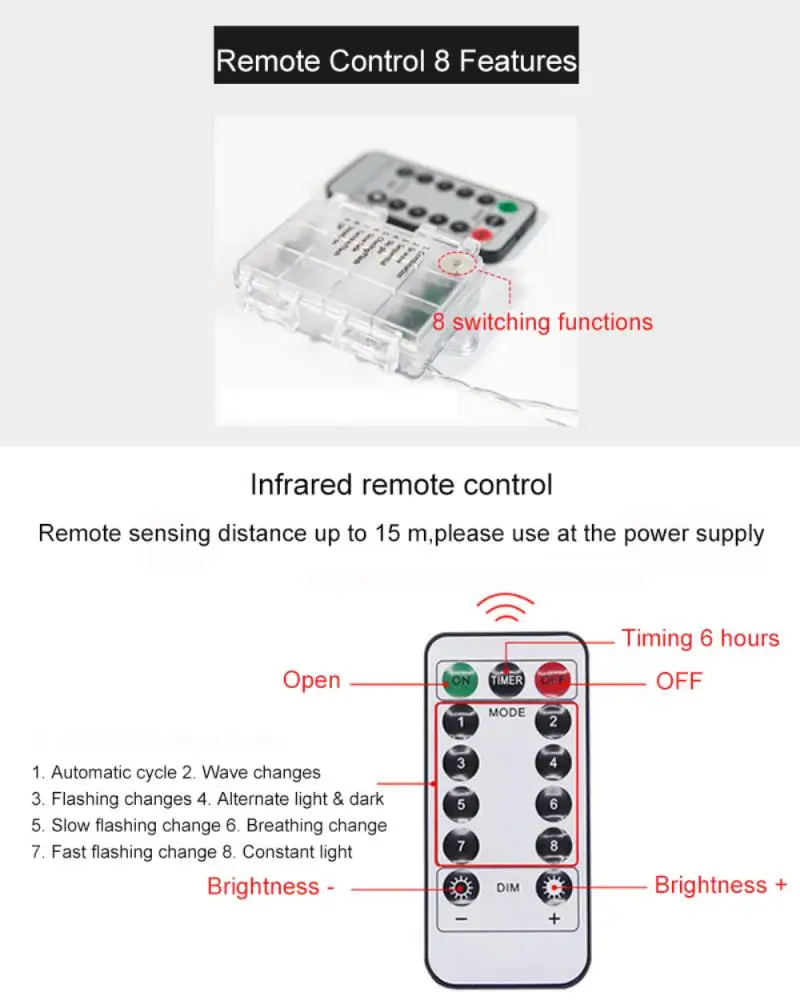 【Аккумулятор дистанционного управления, 6 метров 40 lights】 3 батарейки типа АА, освещение: 8 режимов