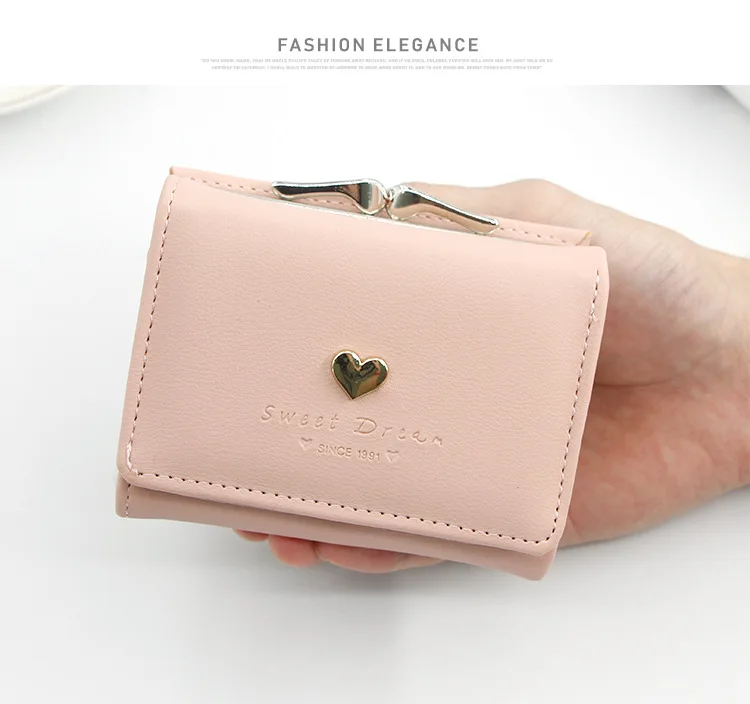 Маленький женский кошелек с любящим сердцем, короткий женский кошелек, держатель для карт, модный Женский мини-кошелек для монет для девушек, клатч