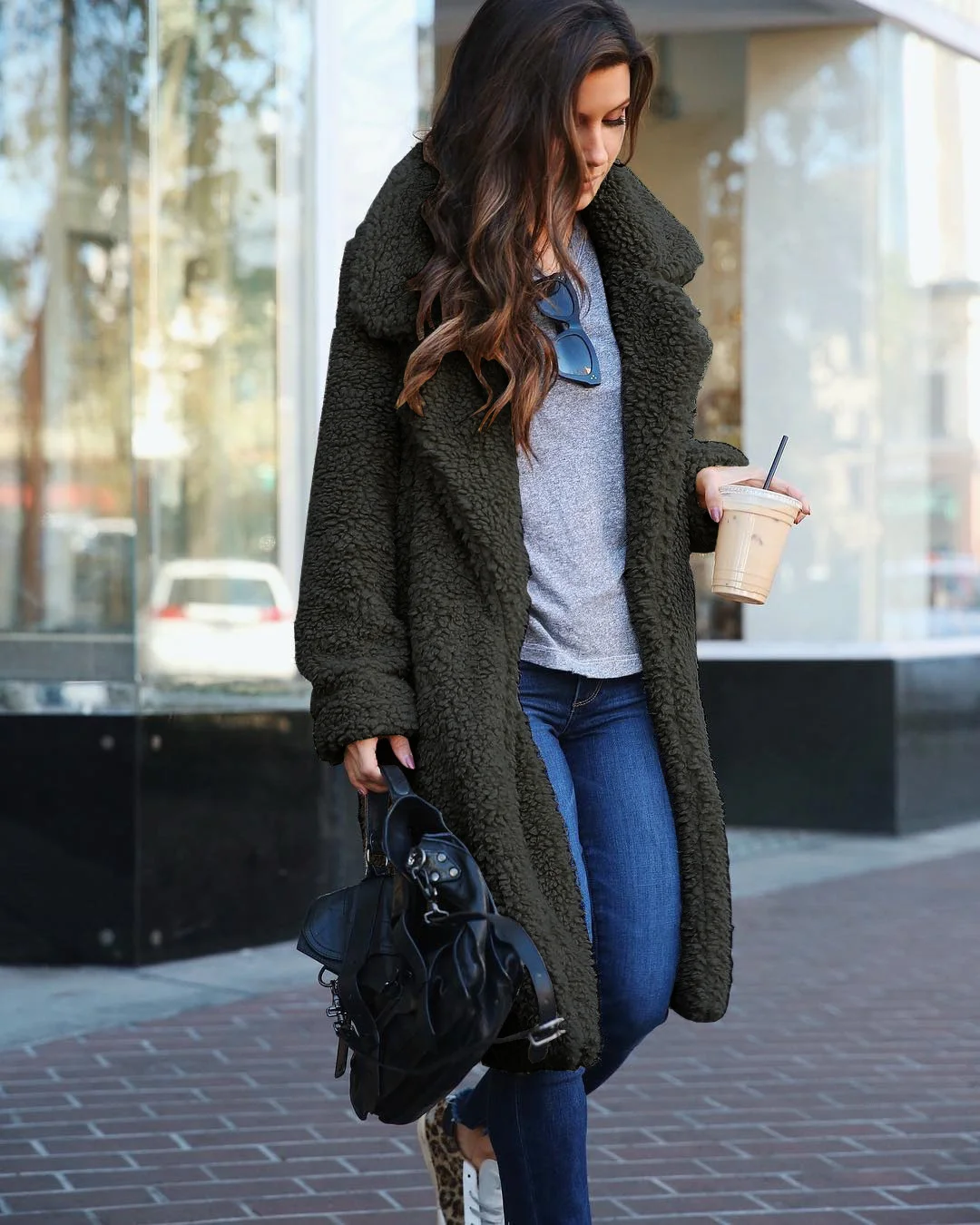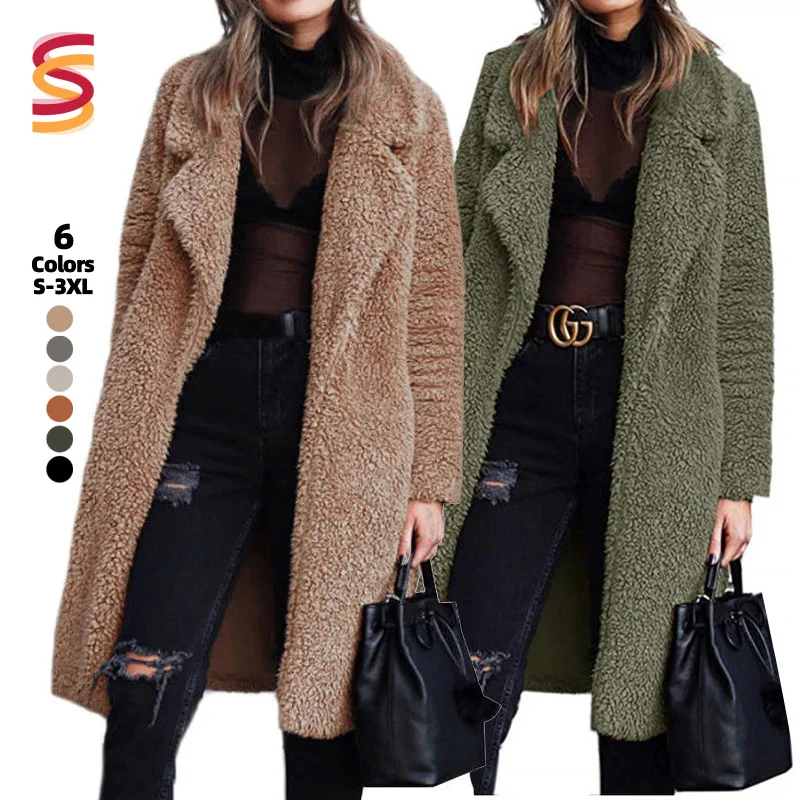 Новинка 2021, женская зимняя теплая длинная куртка из мягкой овечьей шерсти, плюшевое пальто, повседневная верхняя одежда