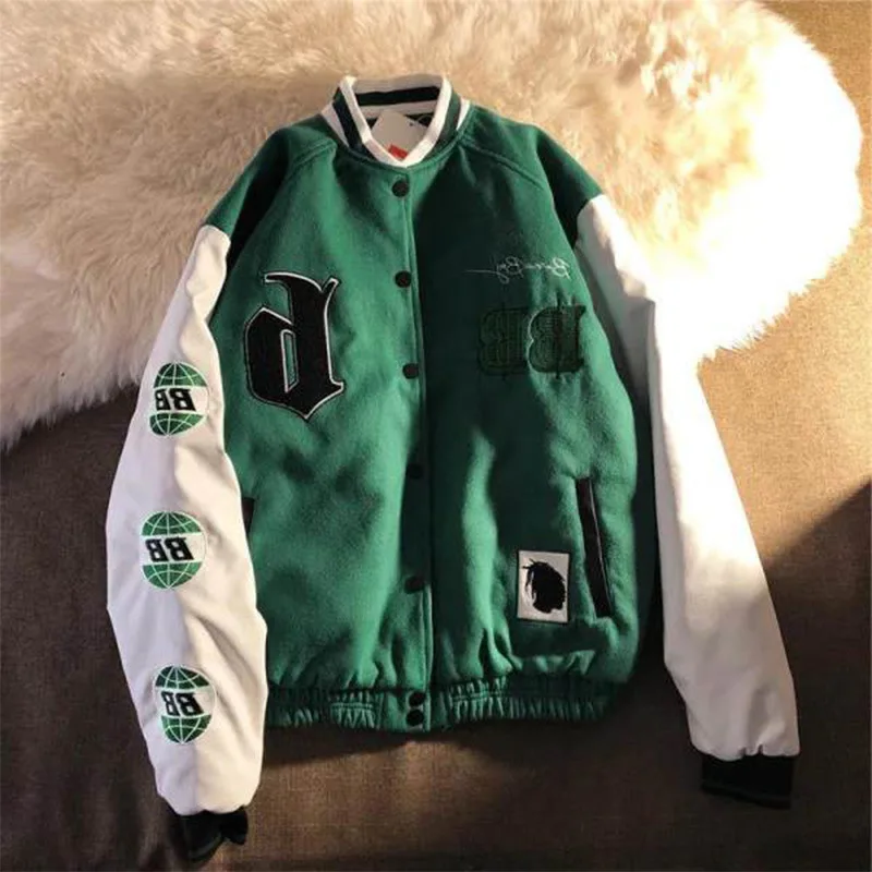 Куртка женская в стиле ретро с вышивкой букв, свободная бейсбольная форма в стиле Хай-стрит, в стиле хип-хоп, куртка оверсайз, уличная одежда, Y2K