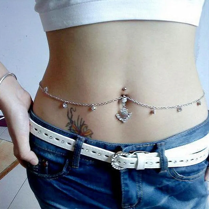 Женское пирсинг-цепочка для пупка, модное ювелирное изделие со стальными пуговицами, цепочка на талию стразы, кольцо для пирсинга пупка, ювелирное изделие для тела, подарок