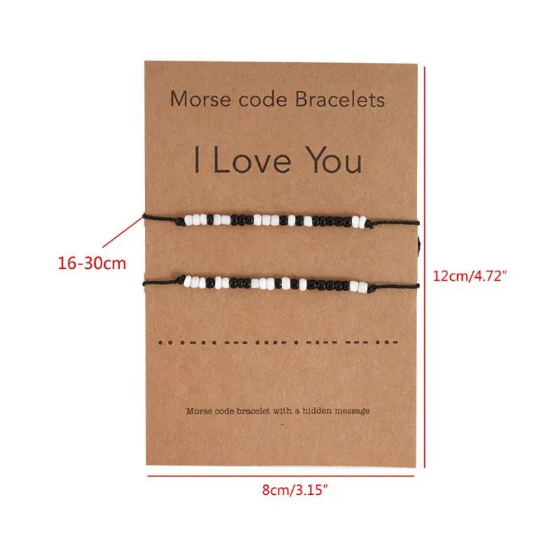 2 шт., браслет из бусин с надписью «I Love You Friendship Morse Code» и секретным сообщением для женщин и мужчин, ювелирные изделия для влюбленных, подаркиOOTDTY2 шт., браслет из бусин с надписью «I Love You Friendship Morse Code» и секретным сообщением для женщин и мужчин, ювелирные изделия для влюбленных, подаркиХарактеристика:Специальный дизайн:Выразите свою любовь с какой-то тайной Морзе,Наш кодовый браслет Морзе элегантный и минималистичный,Добавив изысканный дизайн карты пожеланий, это подарок очарования, который никто не может быть перемещенПрочный материал:Этот браслет I love you изготовлен из маленьких бусин и регулируемой черной текстильной ленты,Удобный и прочный в использовании;Браслет Для Пары Дружбы:Лучшие вещи очень немногие в этом мире, вот почему есть только один вы:Вы тот, который я искал, любя вас, тесно связан с моей жизньюОтличный подарок для кого-то особенного:Как браслет дружбы, браслет для пары, Семейный Браслет или как подарок на свадьбу;Это прекрасный подарок на свидание, годовщину, день рождения, Рождество, День Святого Валентина, День матери, свадьбу и т. д.Код Морзе:Код Морзе-это Алфавит или код, в котором представлены буквы,Каждый персонаж представлен уникальной последовательностью;Мы предлагаем таблицу сравнения кода Морзе на обратной стороне карты wish, удобную для дешифрованияХарактеристики:Материал: Вощеная Веревка и бусины из смолыПол: унисексРазмер:Более подробно, пожалуйста, смотрите фотоКоличество: 2 шт.Примечание:Перевод ед. измерения: 1 см = 10 мм = 0,39 дюймовНет розничной упаковки.Допускается ошибка в 1–3 мм из-за измерений вручную Пожалуйста, убедитесь, что вы не возражаете, прежде чем сделать ставку.Из-за разницы между различными мониторами изображение может не отражать фактический цвет изделия. Спасибо!Посылка включает в себя:2Pcsx браслеты.