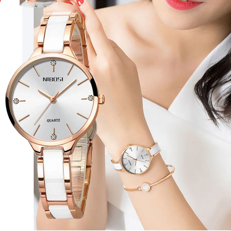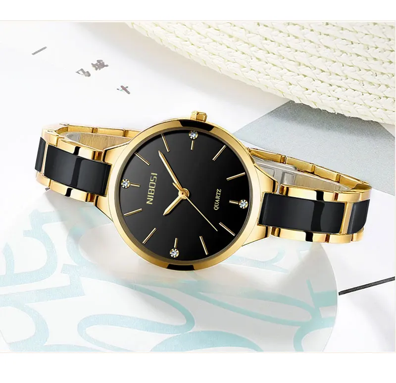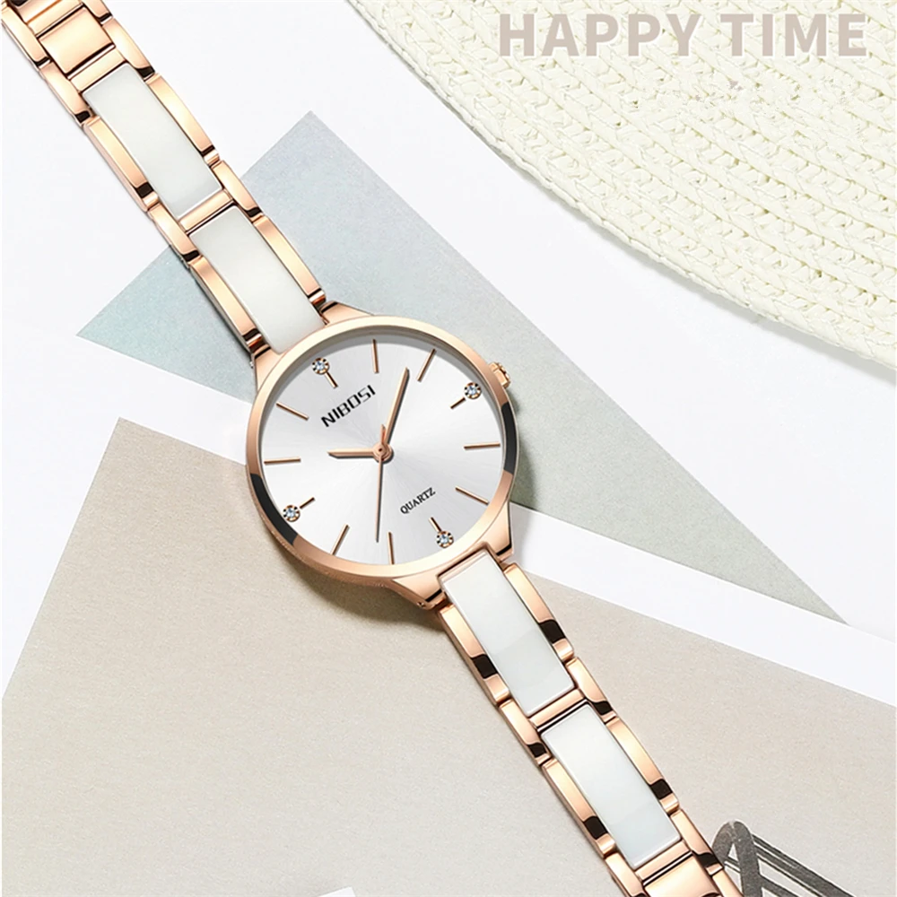 Модные брендовые роскошные часы NIBOSI для женщин керамические водонепроницаемые простые кварцевые женские часы из нержавеющей стали женские часы