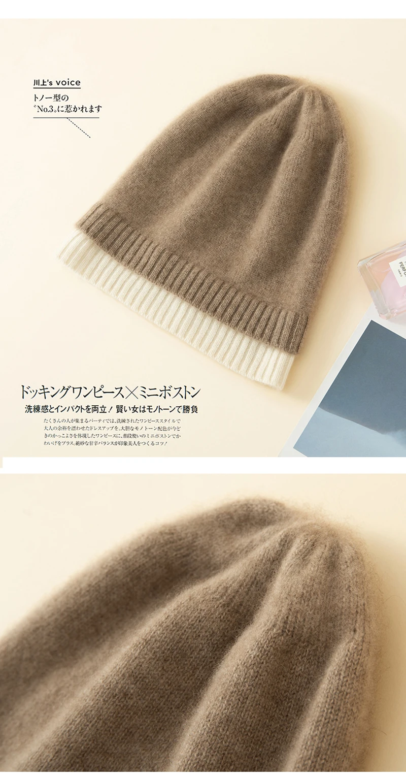 Женская вязаная шапка LONGMING, сезон 100%, кашемировые зимние теплые шерстяные шапки, осенняя Женская Роскошная кашемировая шапка, вязаные шапки, однотонная уличная одежда