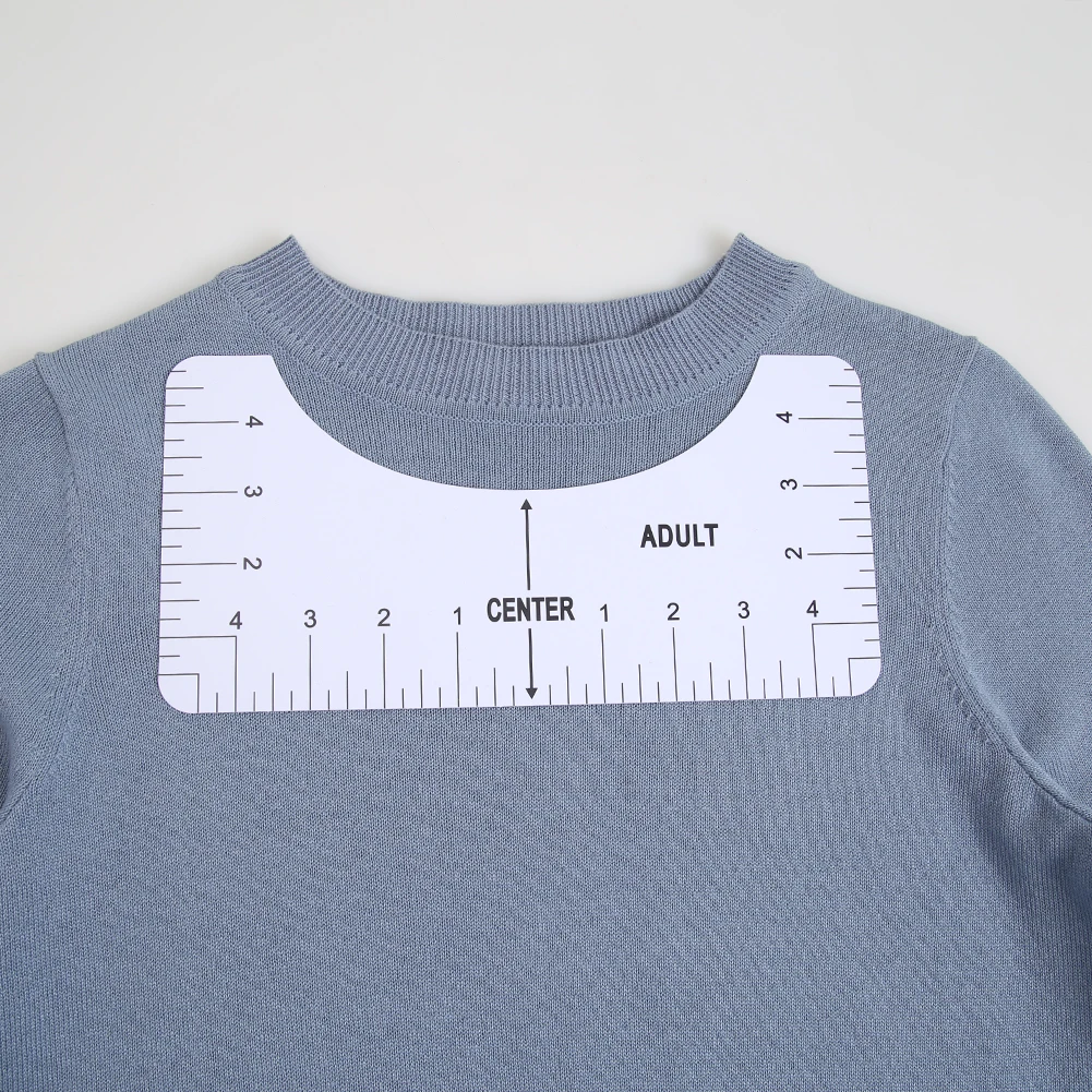 Простота использования: просто выровняйте линейку на воротнике футболки, а затем спроектируйте ее по центру.